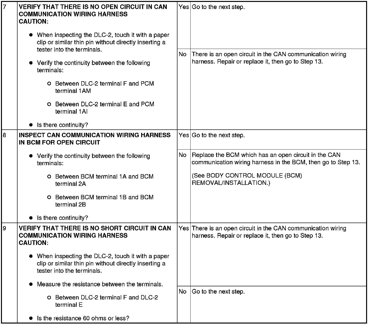 - Possible causes of communication errors between the M-MDS and vehicle include communication circuit interruption due to an open circuit in the CAN communication wiring harness, or poor contact of connector terminals, or a BUS OFF condition due to a short circuit in the CAN communication wiring harness.