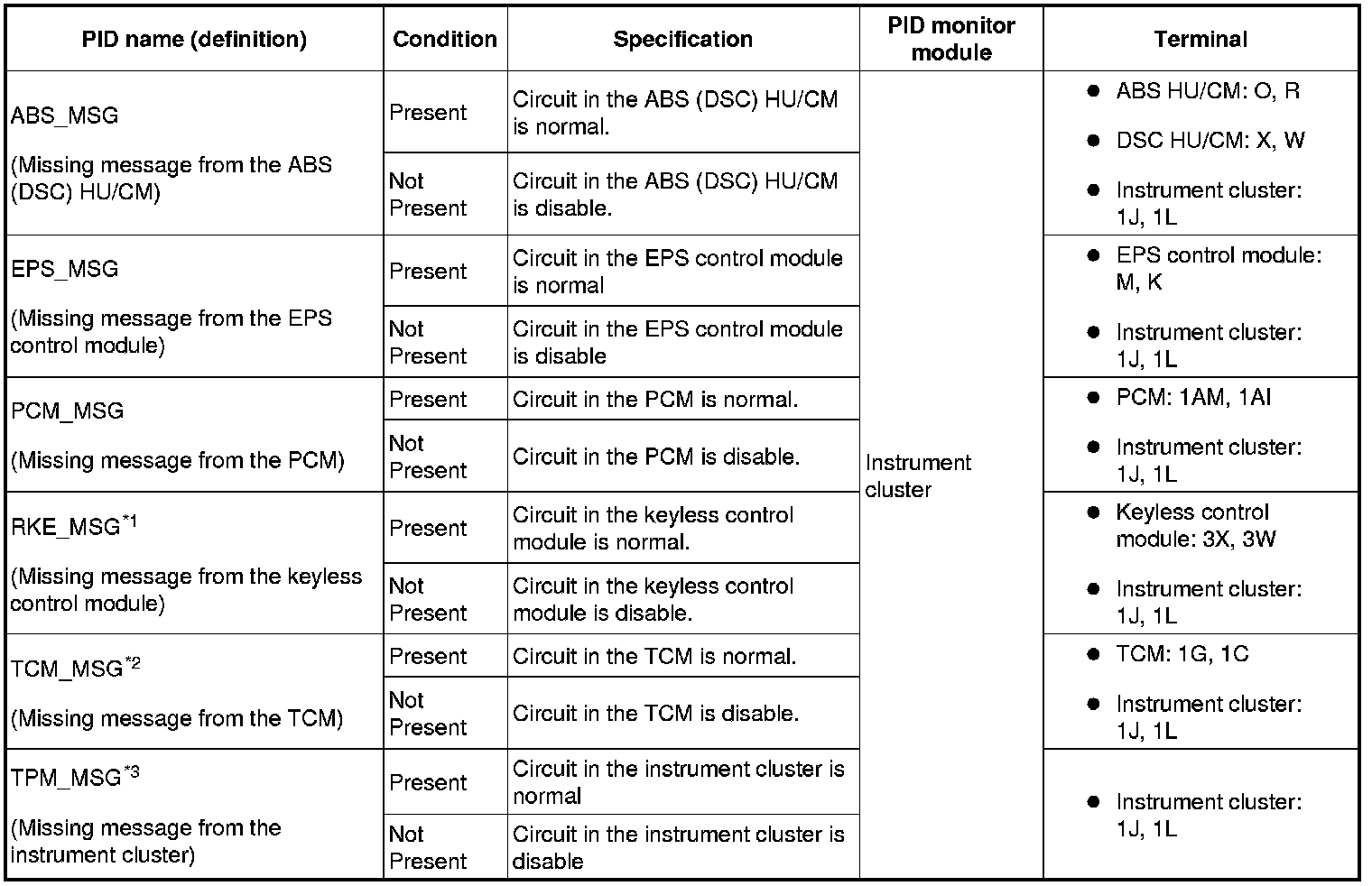 PID/DATA MONITOR TABLE [MULTIPLEX COMMUNICATION SYSTEM]