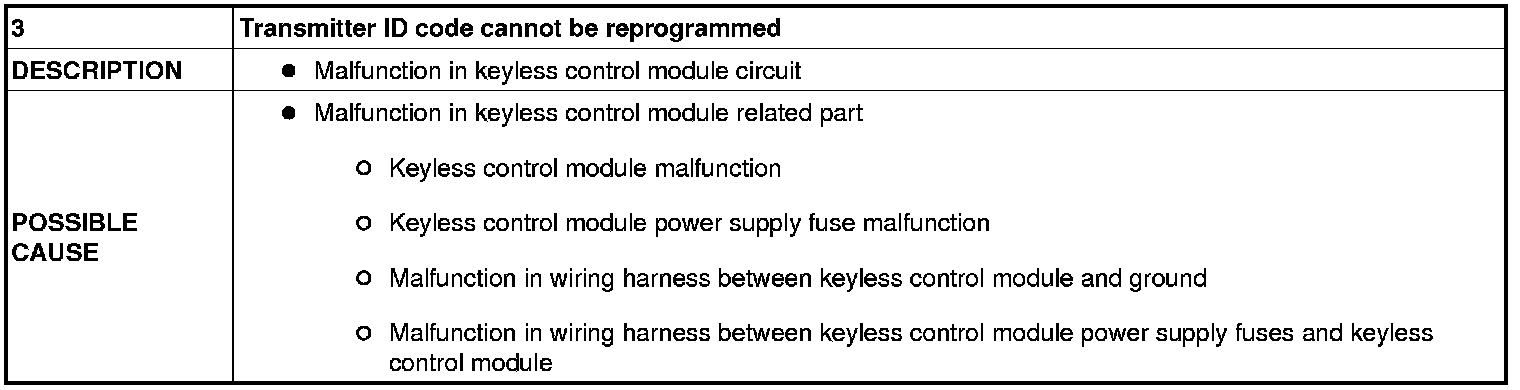 TRANSMITTER ID CODE CANNOT BE REPROGRAMMED [KEYLESS ENTRY SYSTEM]
