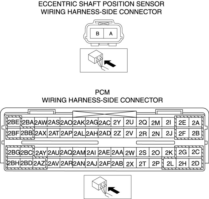- Eccentric shaft position sensor terminal A and PCM terminal 2AG