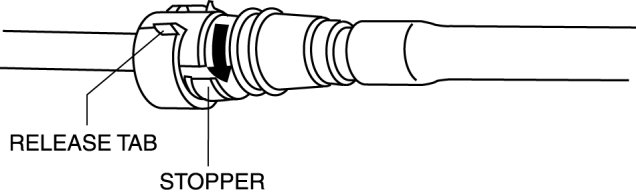 - A checker tab is integrated with the quick release connector for new evaporative hoses. Remove the checker tab from the quick release connector after the connector is completely engaged with the pipe.