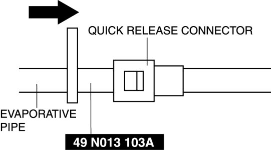 - A checker tab is integrated with the quick release connector for new evaporative hoses. Remove the checker tab from the quick release connector after the connector is completely engaged with the evaporative pipe.