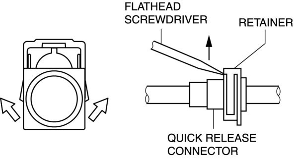 - The quick release connector can be removed by pushing the center of the retainer tabs.