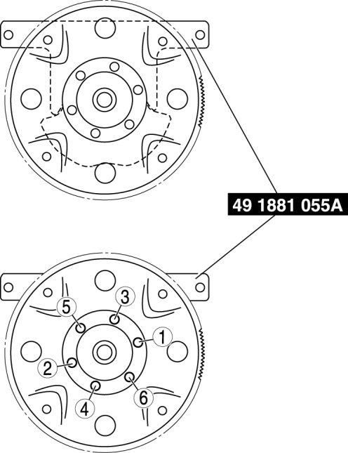 Tighten the drive plate mounting bolts in two or three steps in the order as shown in the figure.