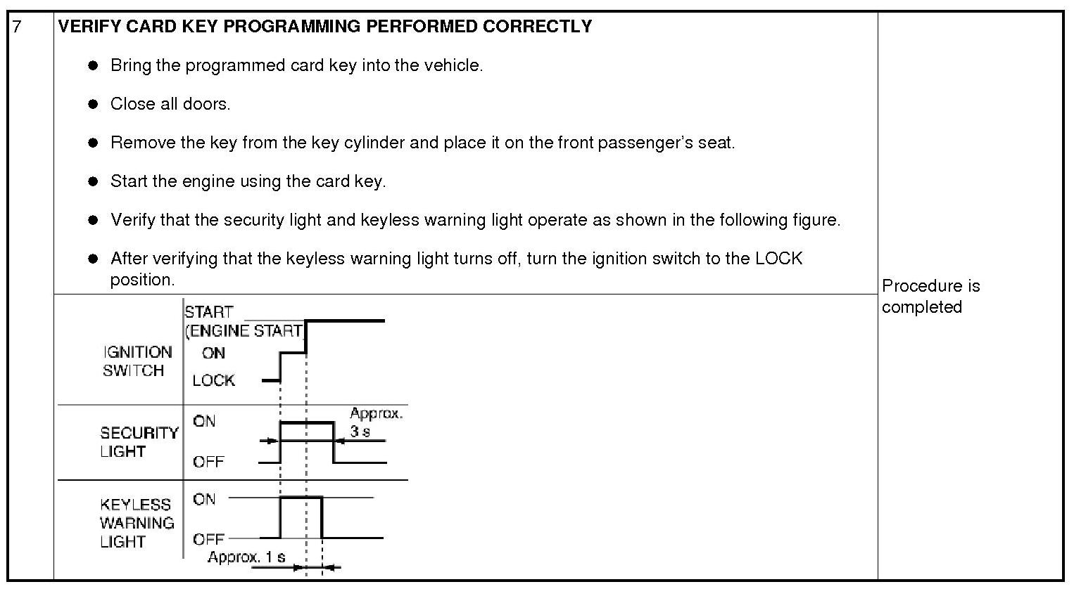 - Before beginning the procedure, verify that the customer has turned in all of the card keys and keys for the vehicle.
