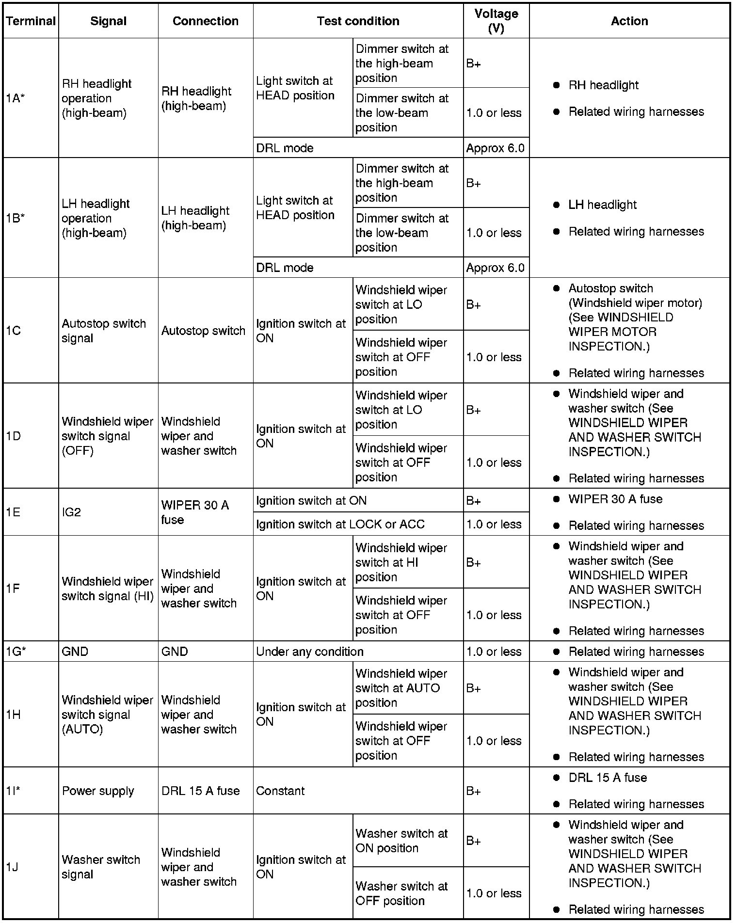 Terminal Voltage List (Reference)