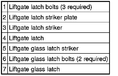 LIFTGATE HANDLE, LOCK AND LATCH - EXPLODED VIEW