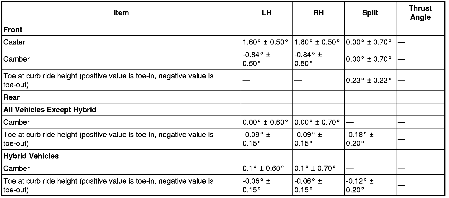 NOTE:All alignment specifications are with the vehicle fuel tank full.