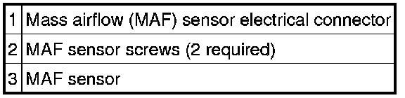 1. Disconnect the mass air flow (MAF) sensor electrical connector.