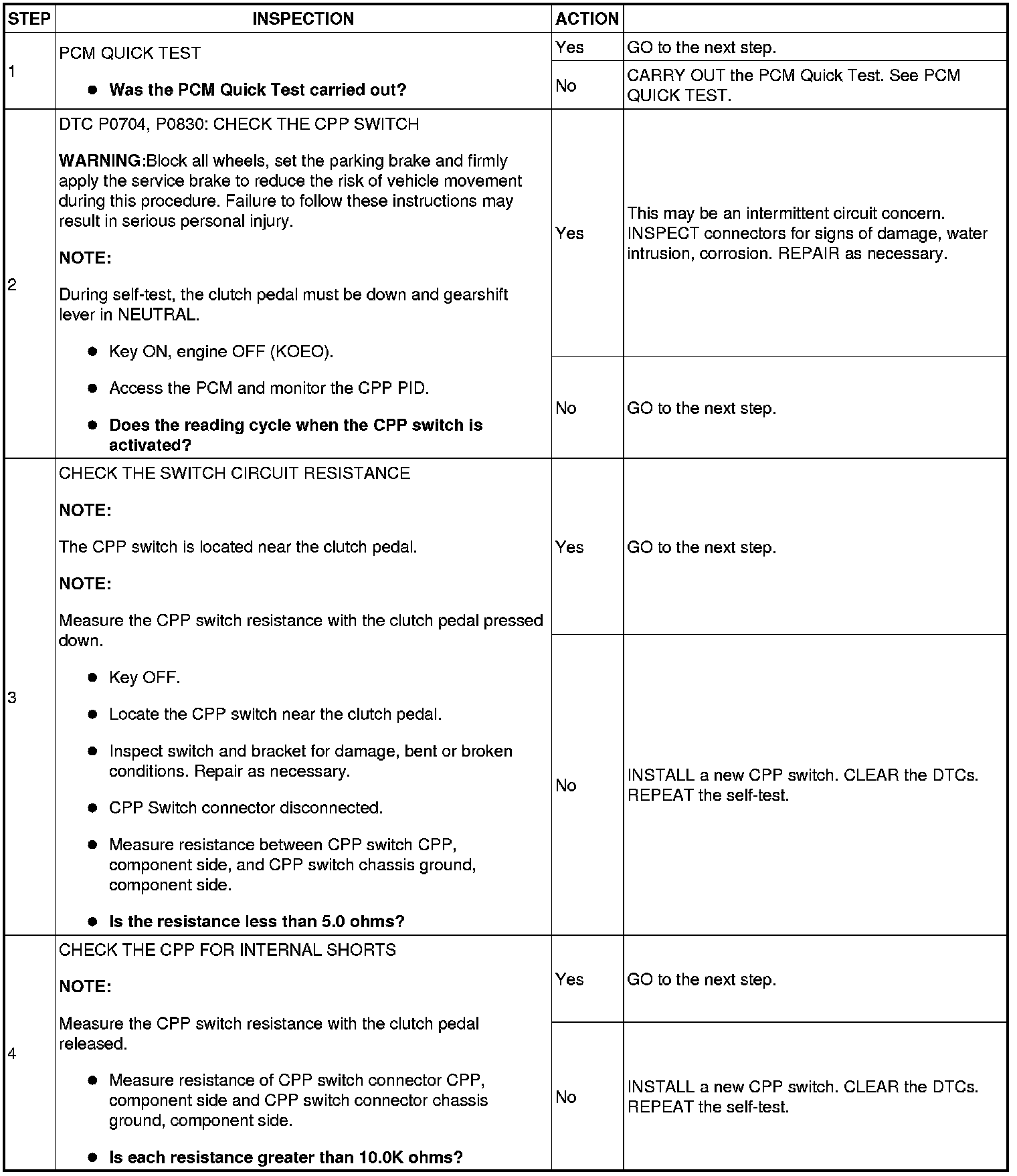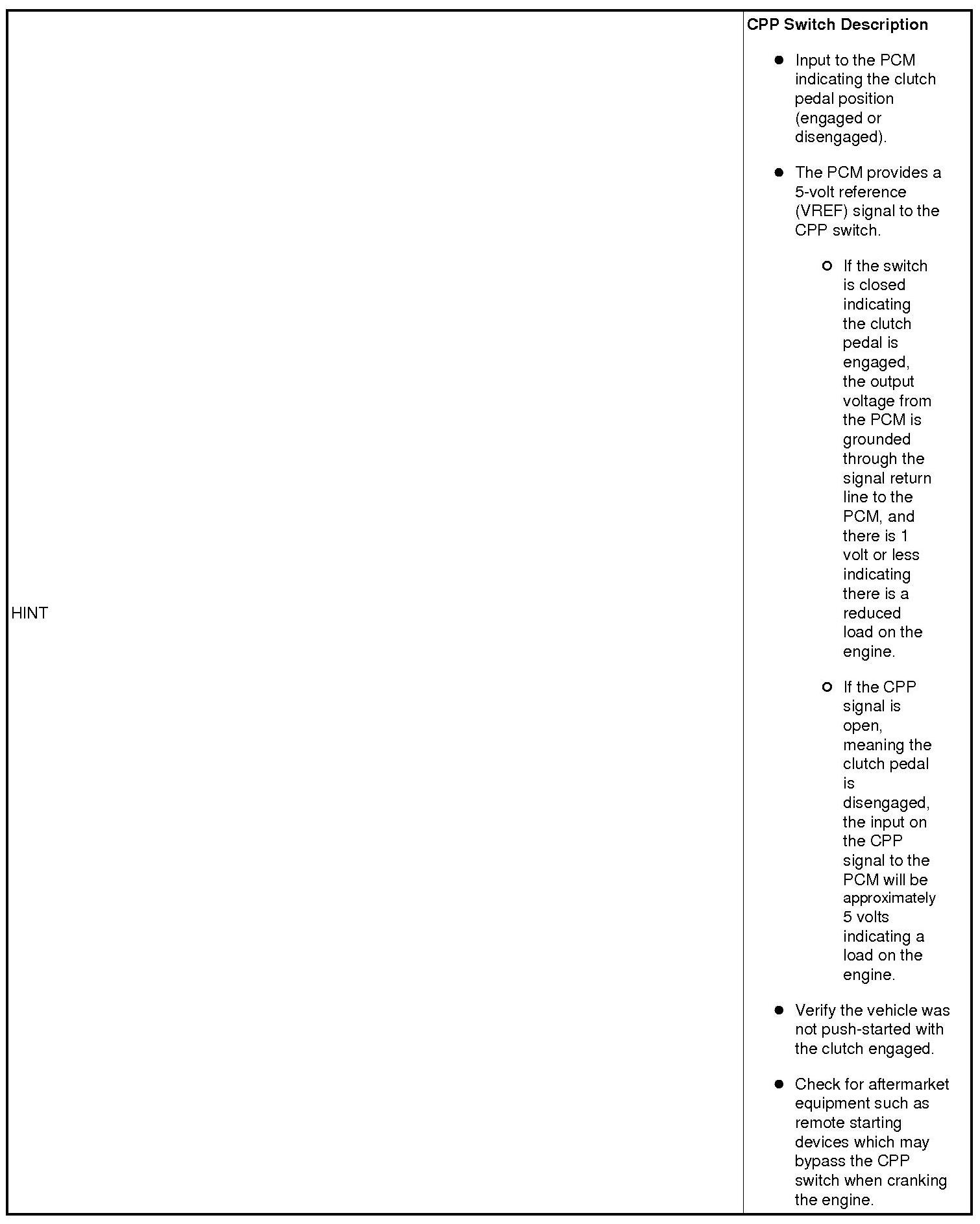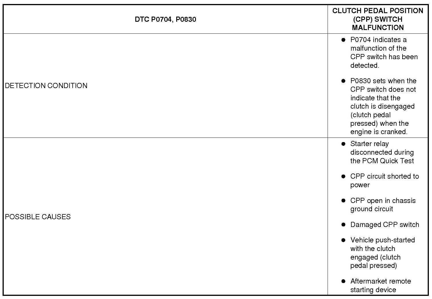 CLUTCH PEDAL POSITION (CPP) SWITCH MALFUNCTION