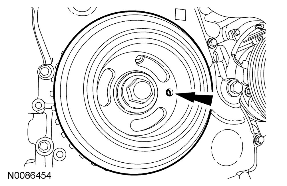 3. Turn the crankshaft clockwise until the hole in the crankshaft pulley is in the 3 o'clock position.