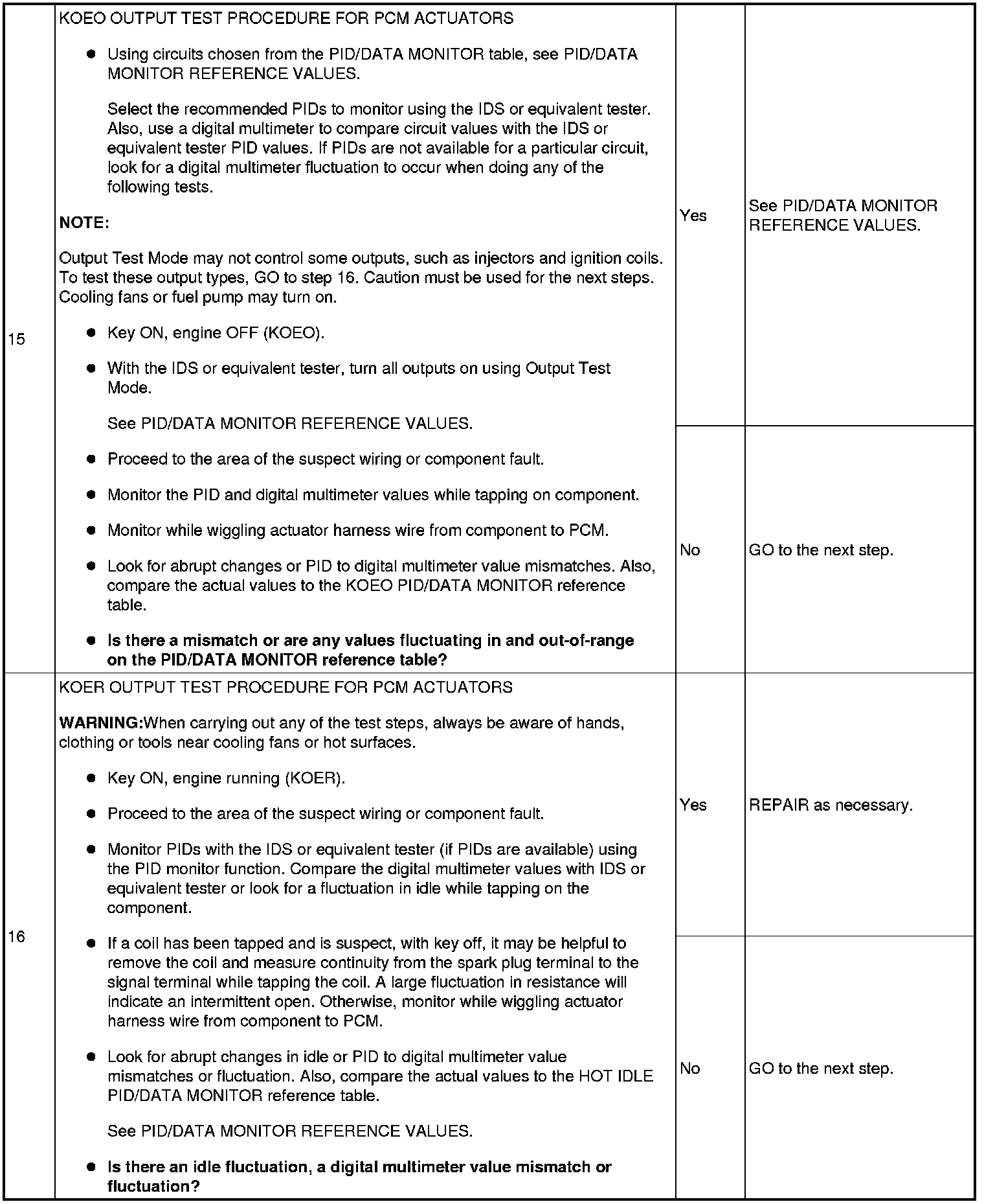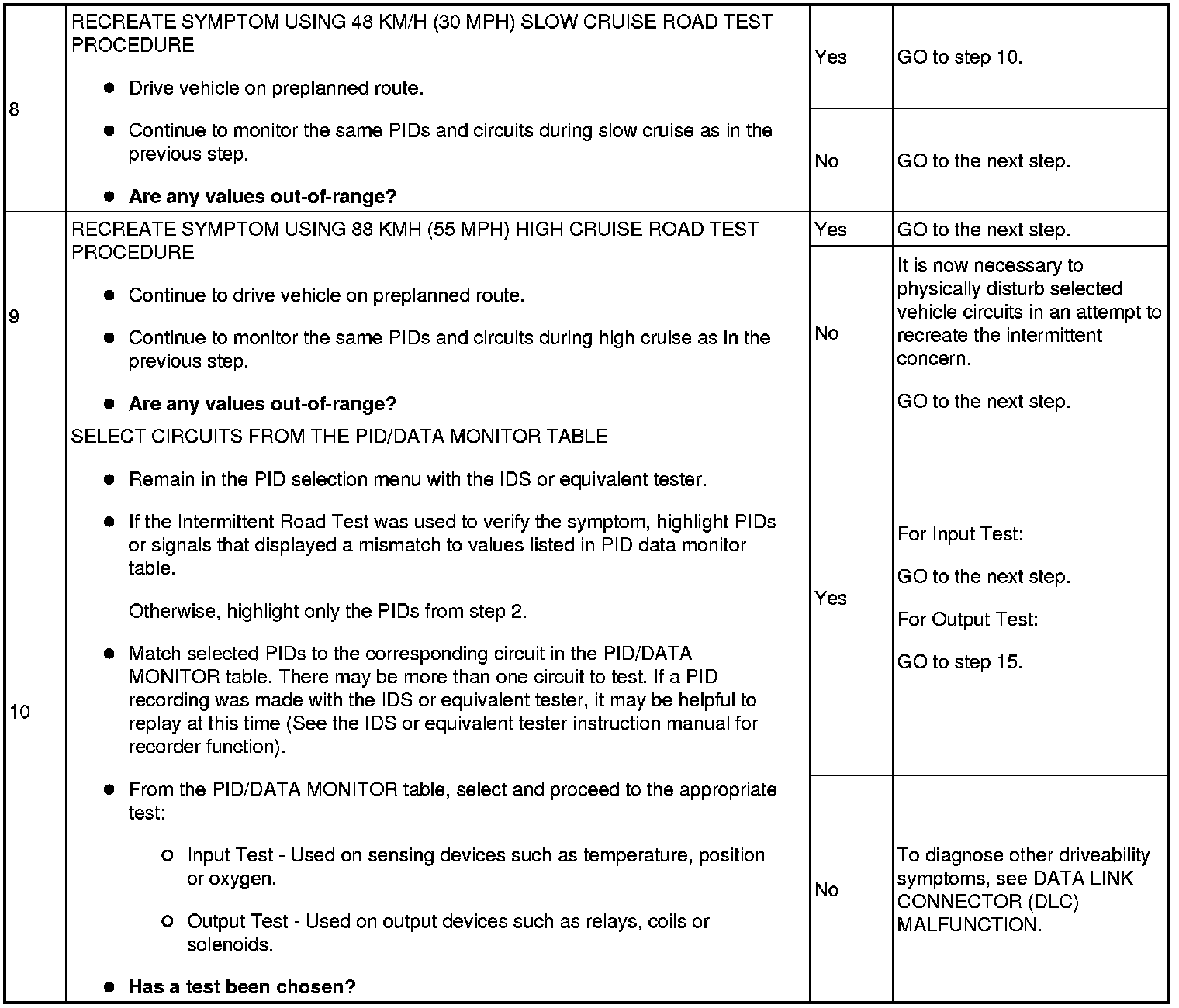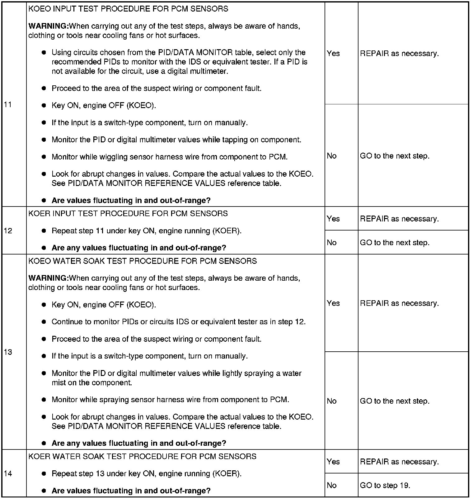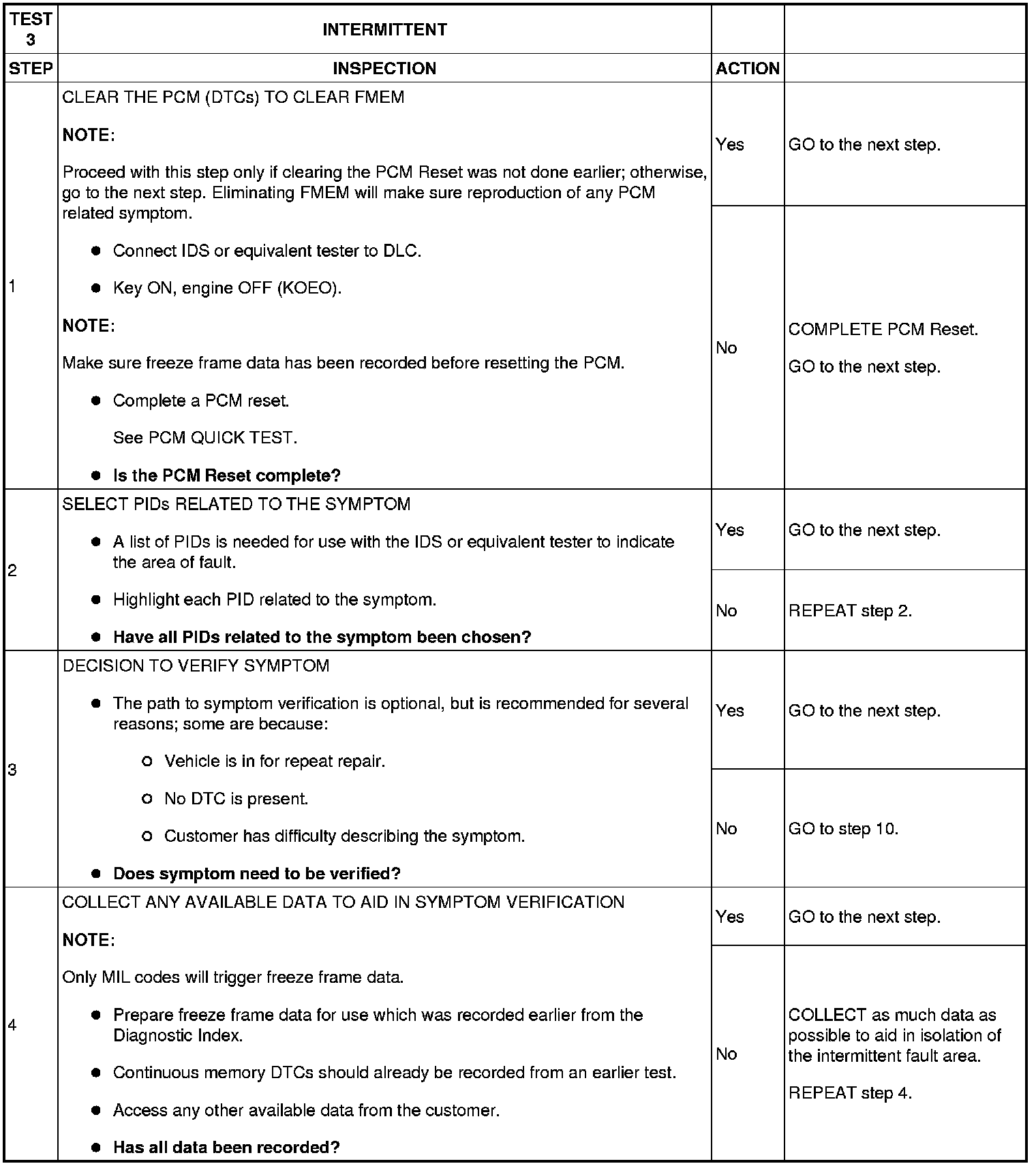 Home >> Mazda >> 2011 >> Tribute 2WD L4-2.5L >> Repair and Diagnosis >> Powertrain Management >> Computers and Control Systems >> Testing and Inspection >> Pinpoint Tests >> Engine Performance >> Test 3: Intermittent