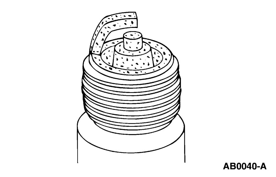 3. Inspect for carbon fouling. Look for black, dry, fluffy carbon deposits on the insulator tips, exposed shell surfaces and electrodes, caused by a spark plug with an incorrect heat range, dirty air cleaner, too rich a fuel mixture or excessive idling.