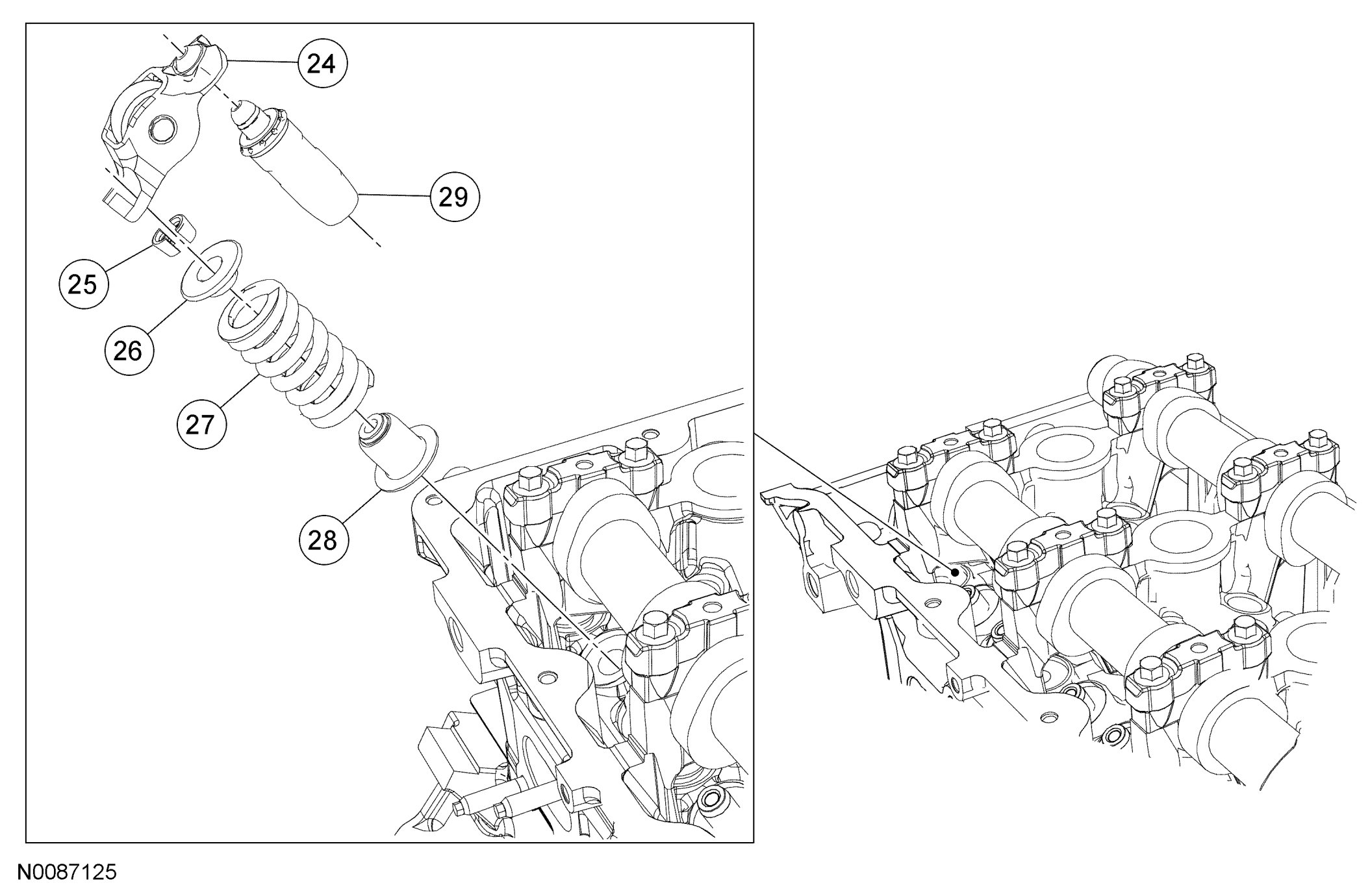 RH Side Roller Follower, Hydraulic Lash Adjuster and Valve Spring