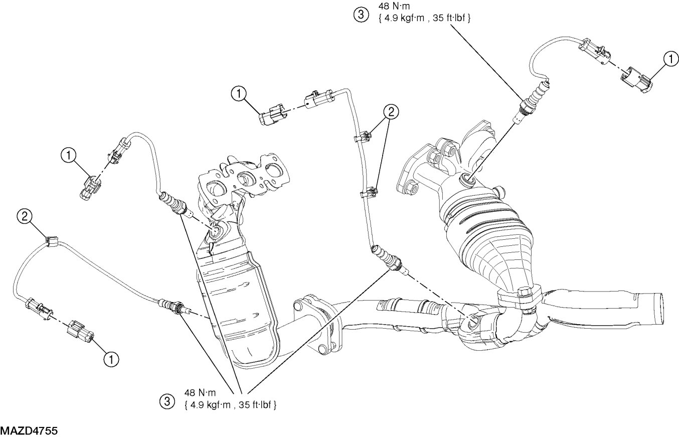 NOTE:Apply a light coat of anti-seize lubricant to the threads of the HO2S and the catalyst monitor sensor.