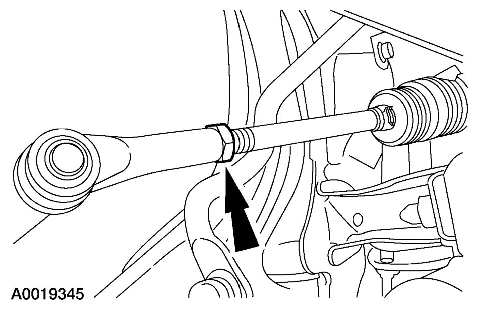 CAUTION:Hold the tie-rod end stationary with a wrench while tightening the nut, or damage to the boot can occur.