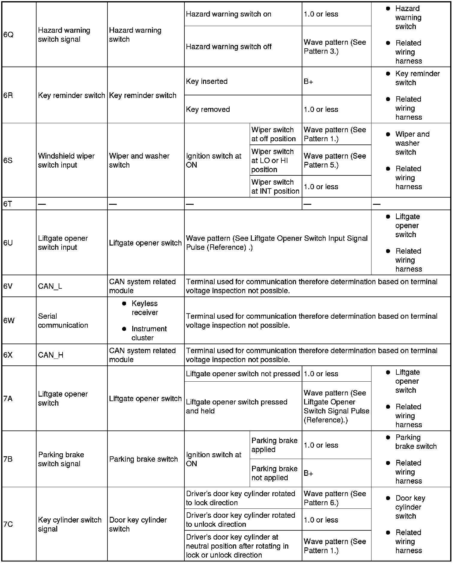 - Key cylinder switch signal: 7C (+) -> body ground (-)
