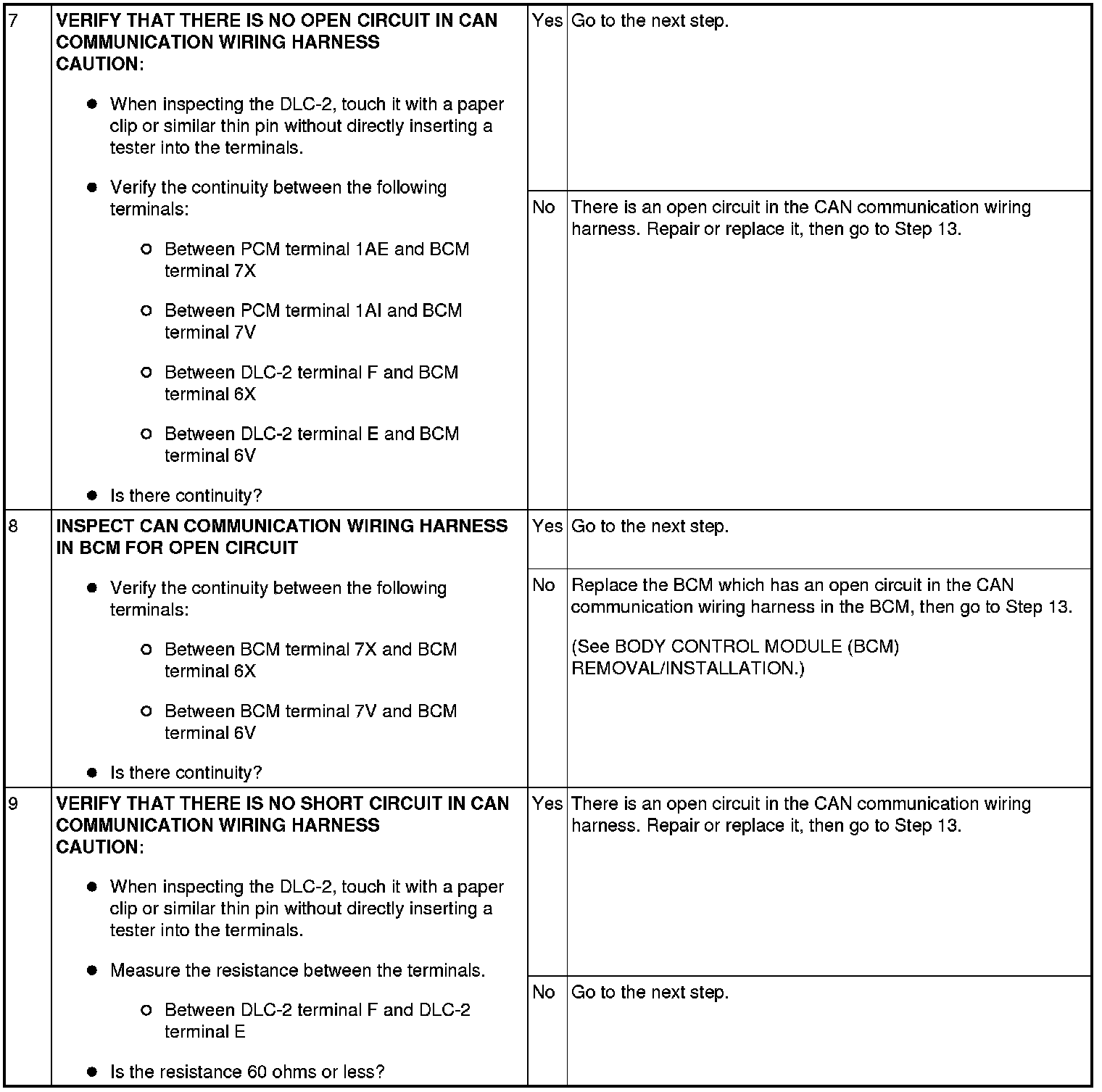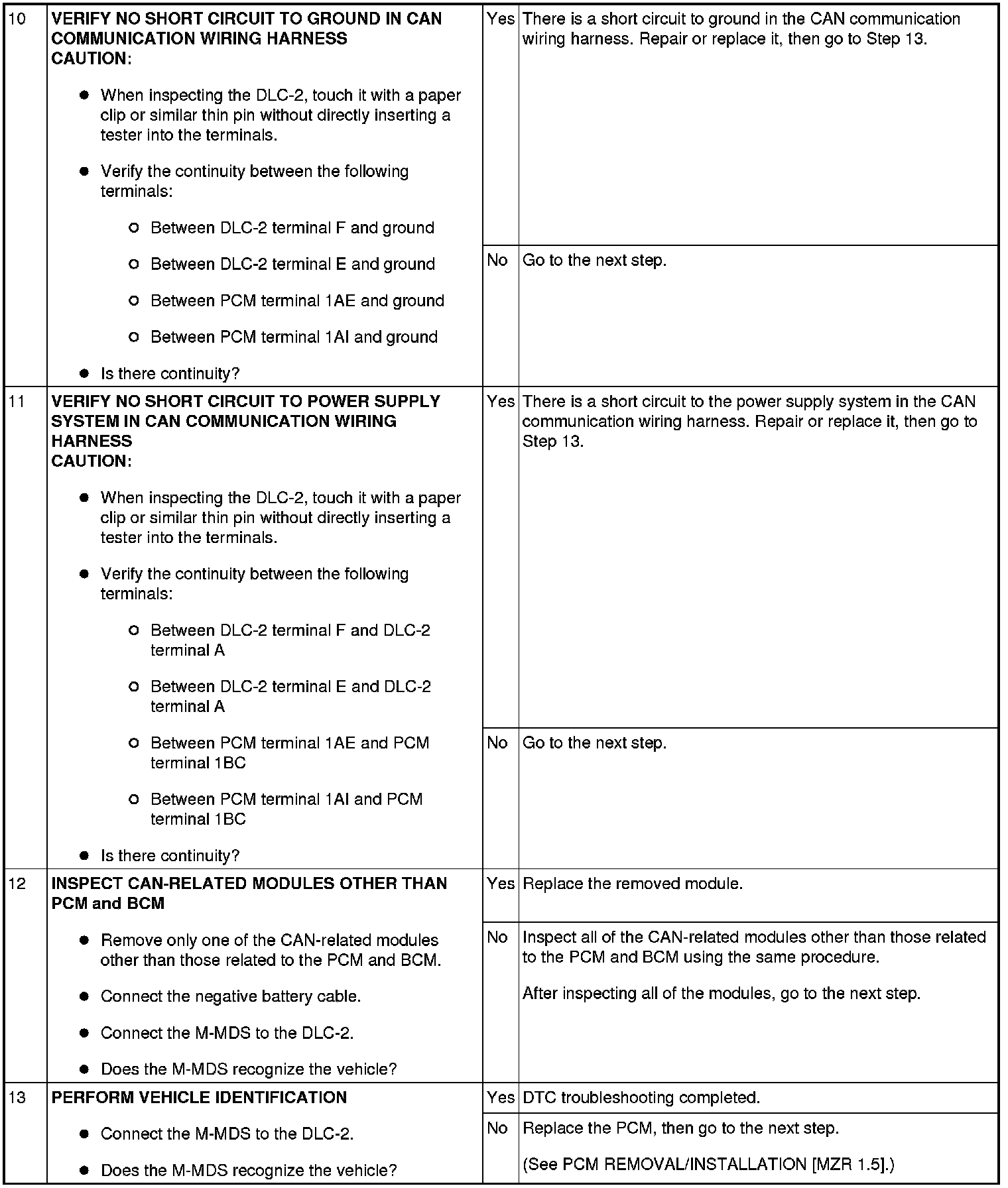 - Possible causes of communication errors between the M-MDS and vehicle include communication circuit interruption due to an open circuit in the CAN communication wiring harness, or poor contact of connector terminals, or a BUS OFF condition due to a short circuit in the CAN communication wiring harness.