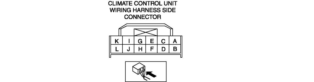 4. After inserting the positive (+) lead of the tester into the climate control unit connector, measure the voltage according to the terminal voltage table.