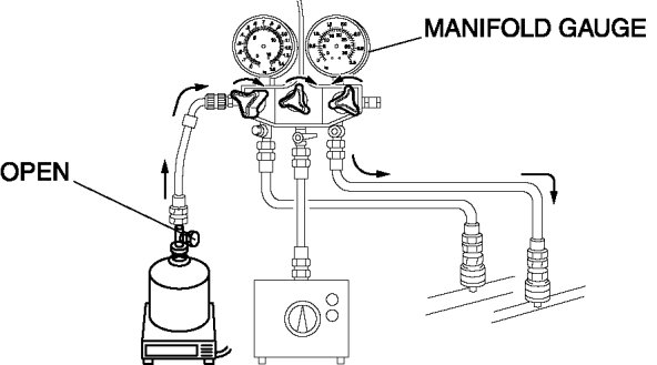 1. Open all the valves of the manifold gauge.