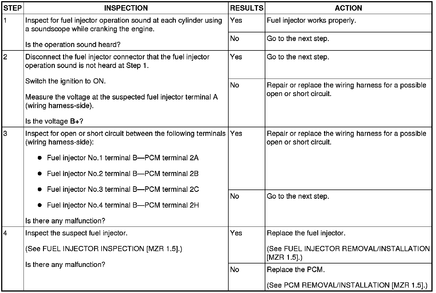 ENGINE CONTROL SYSTEM OPERATION INSPECTION [MZR 1.5]
