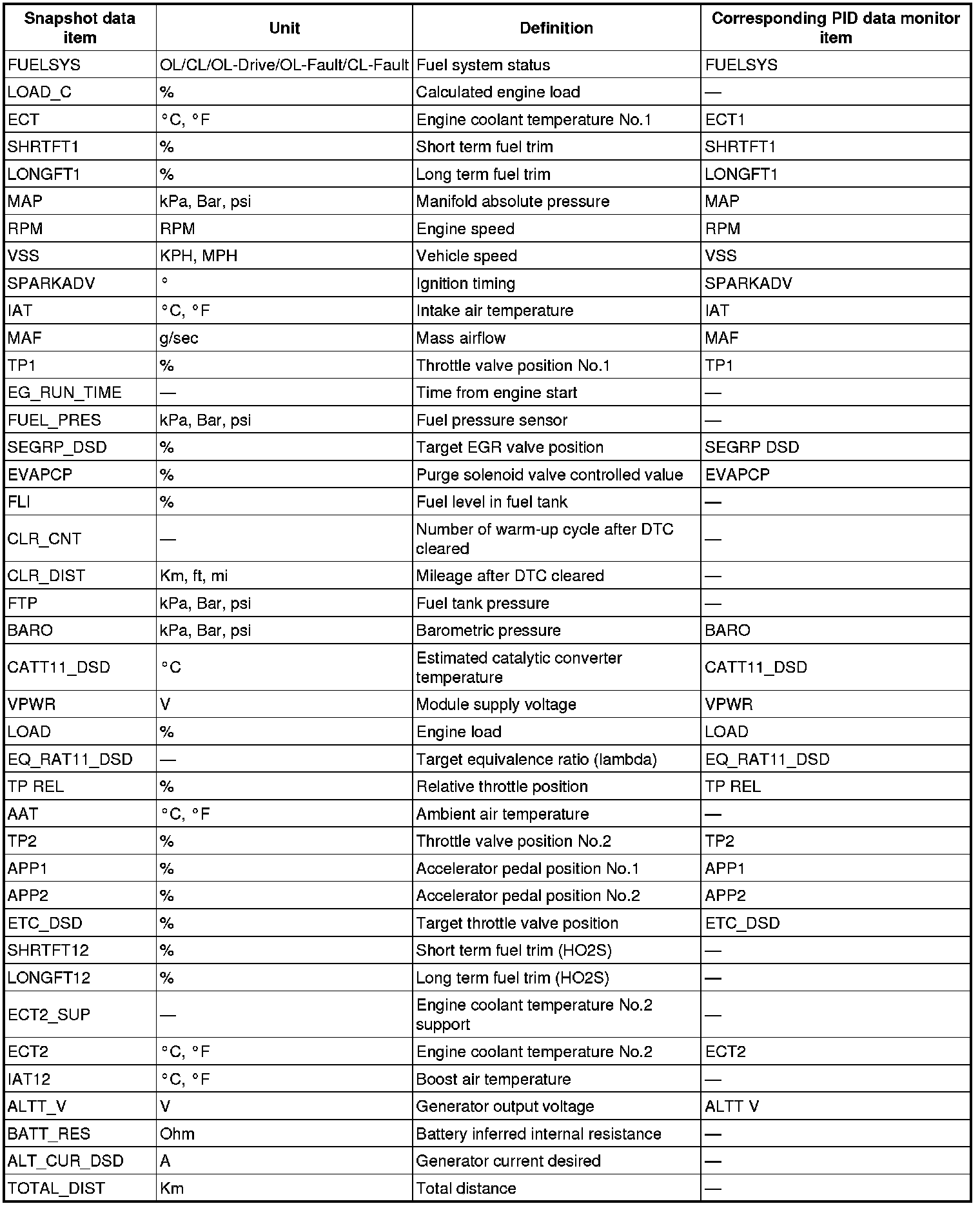 - Refer to PID monitor table for confirm the engine control system operation status while the PCM does not store the DTC. PCM Inspection