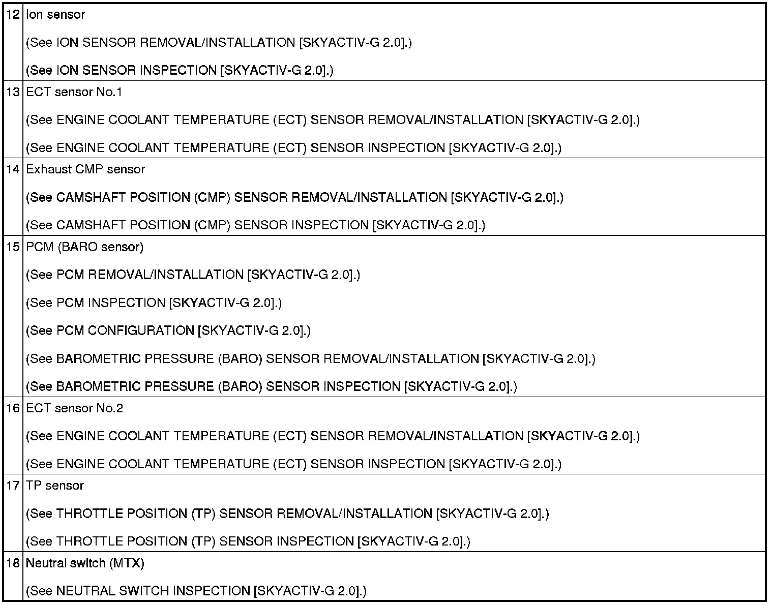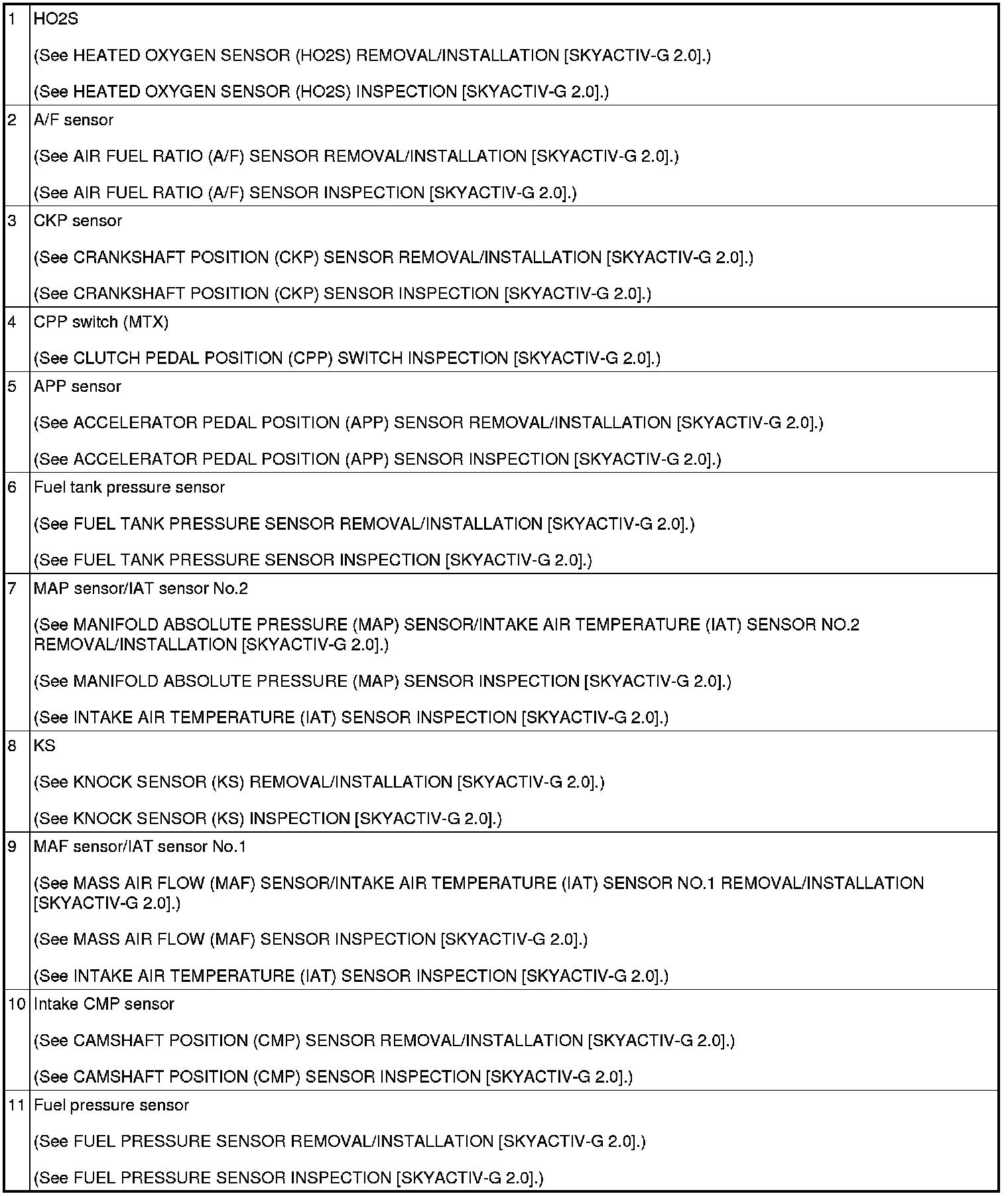 CONTROL SYSTEM LOCATION INDEX [SKYACTIV-G 2.0]