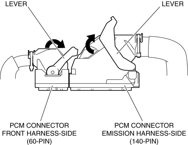 - If the PCM connector is inserted at an angle and the lever is moved, the connector could be damaged. Verify that the PCM connector is inserted straight.