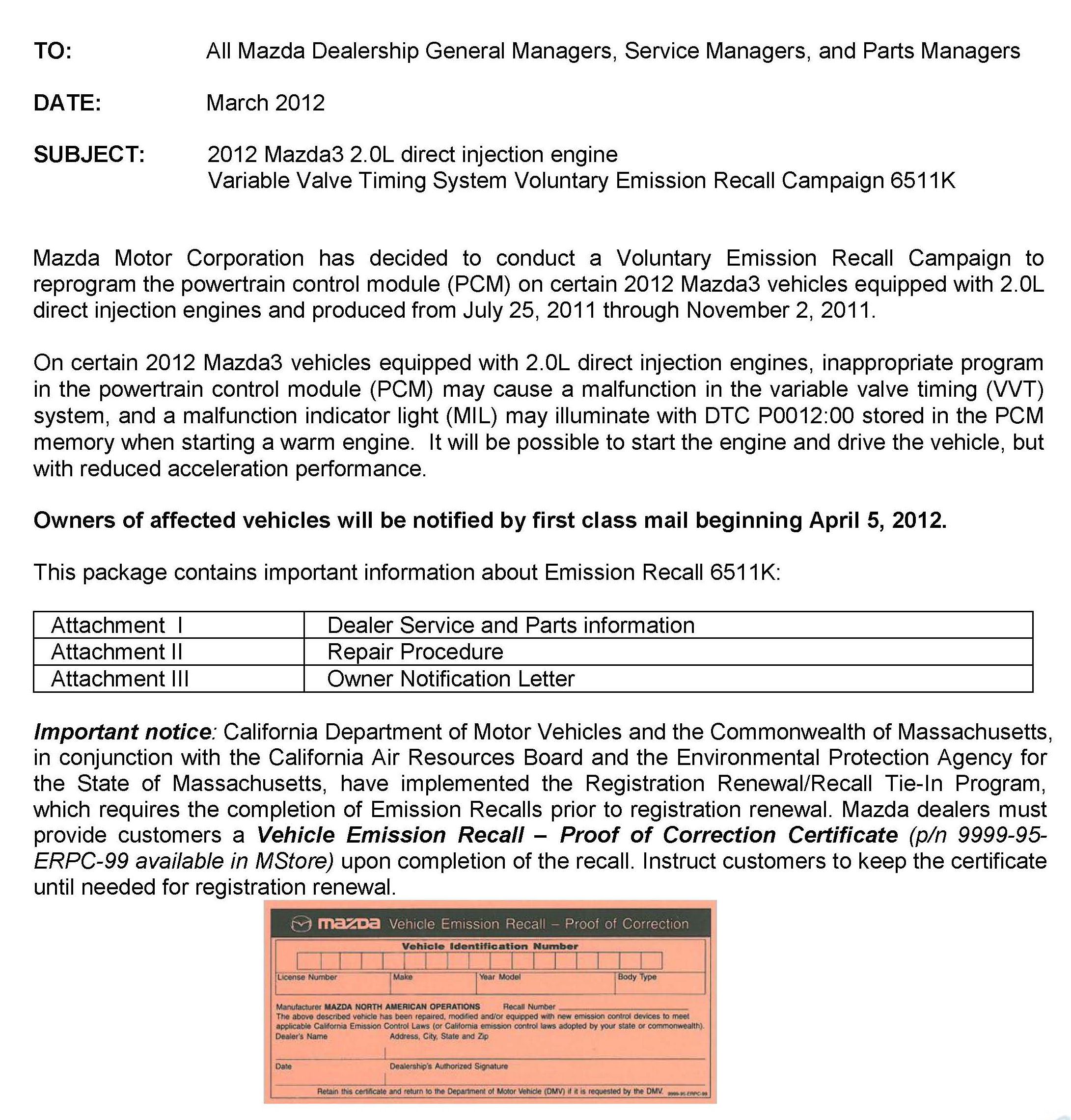 Recall - PCM Update For VVT System Function