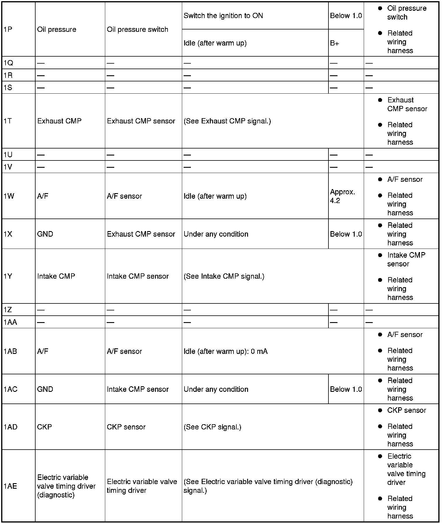 - Because the PCM uses a waterproof connector, the inspection for the voltage/wave pattern cannot be performed. The following values are for reference.