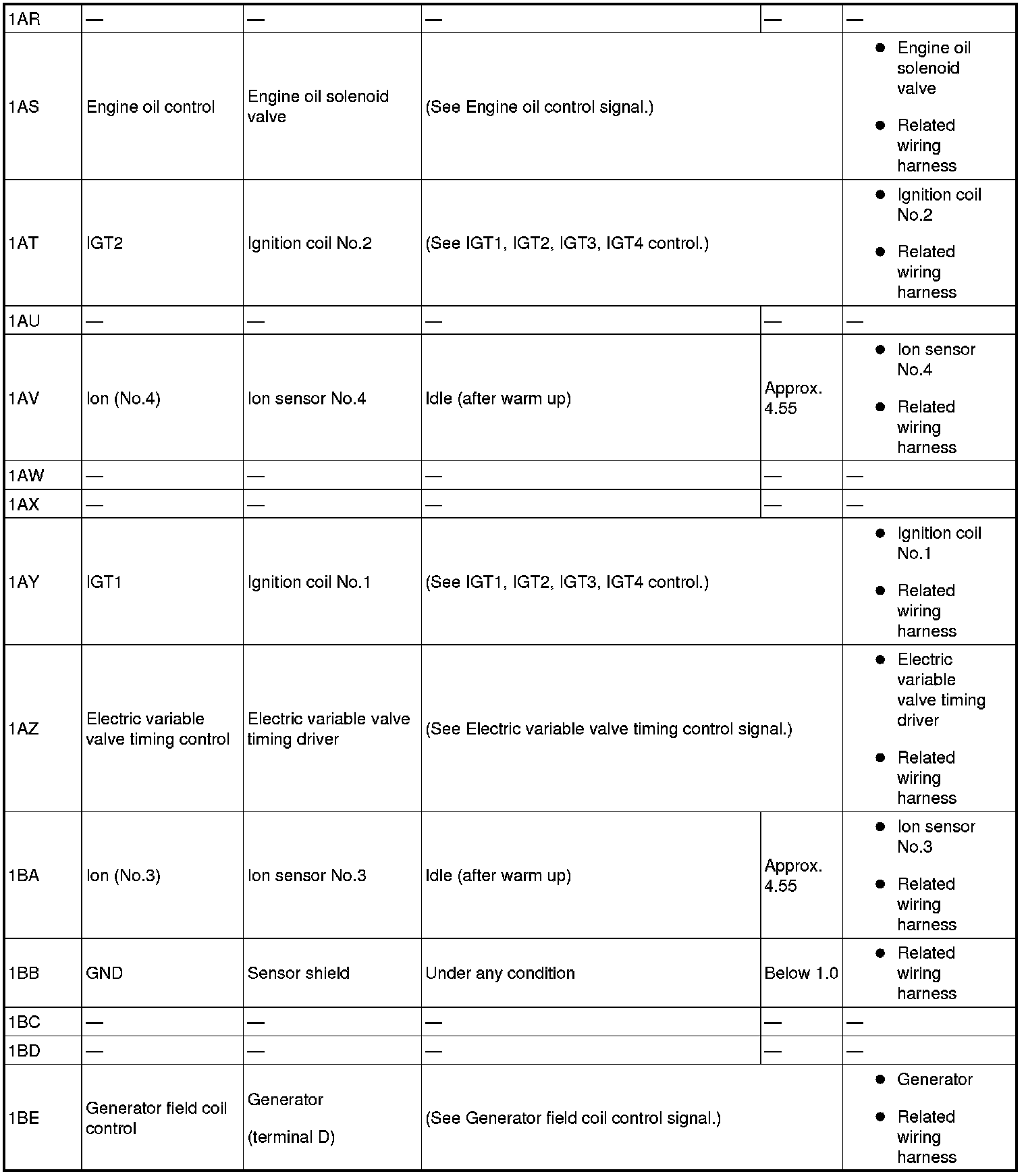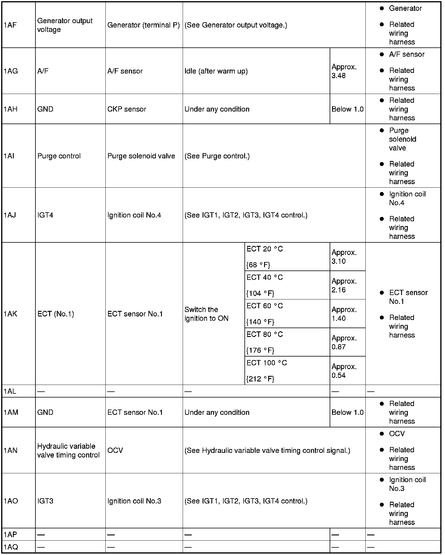 - IGT1(ignition coil No.1): 1AY(+)-body ground(-)