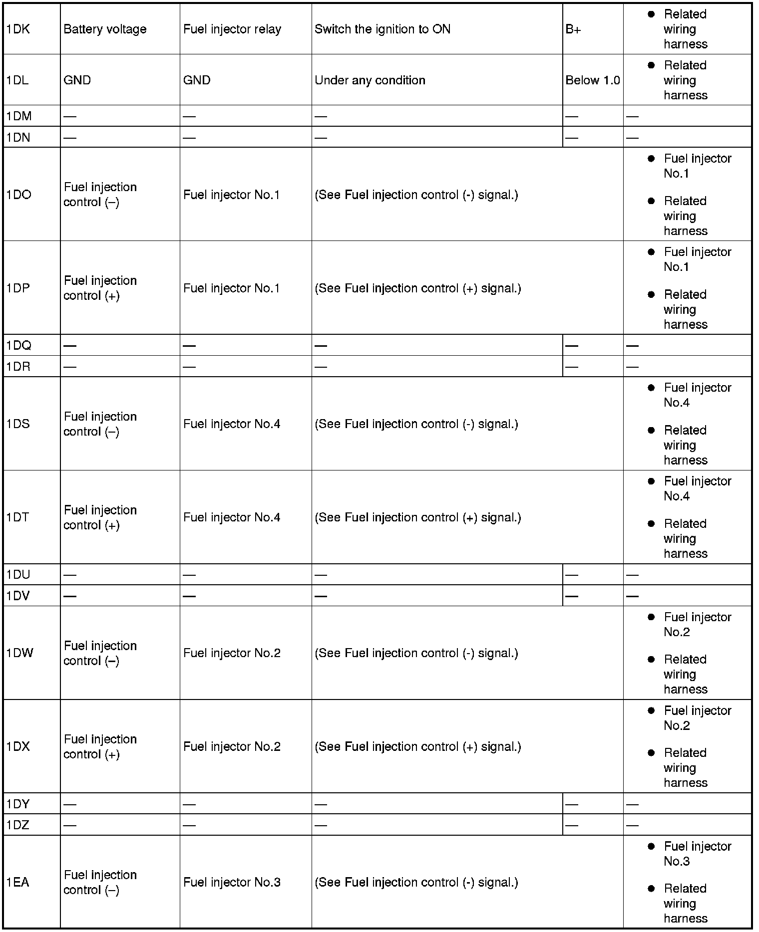 - Fuel Injection No.1: 1DO(+)-body ground(-)