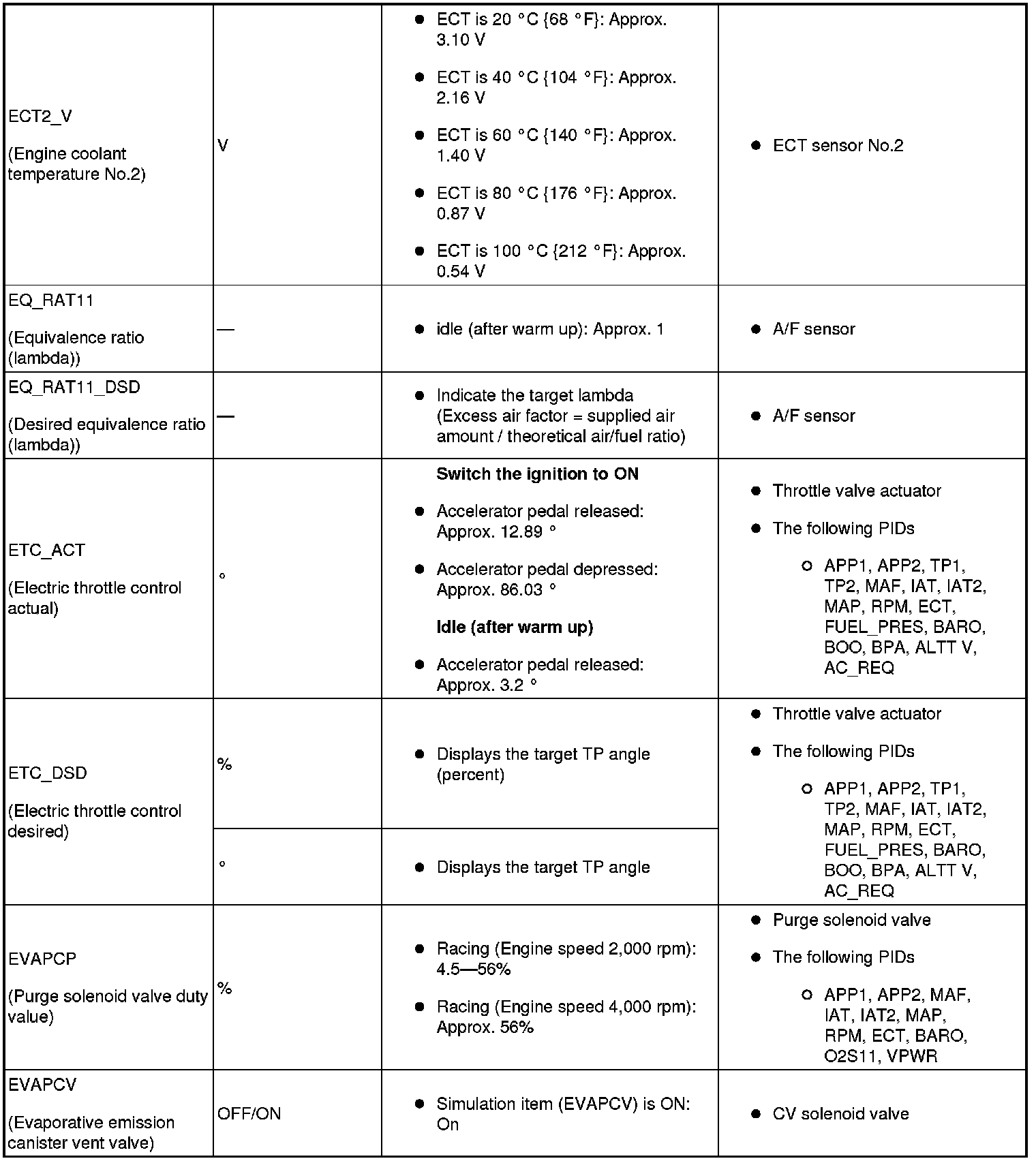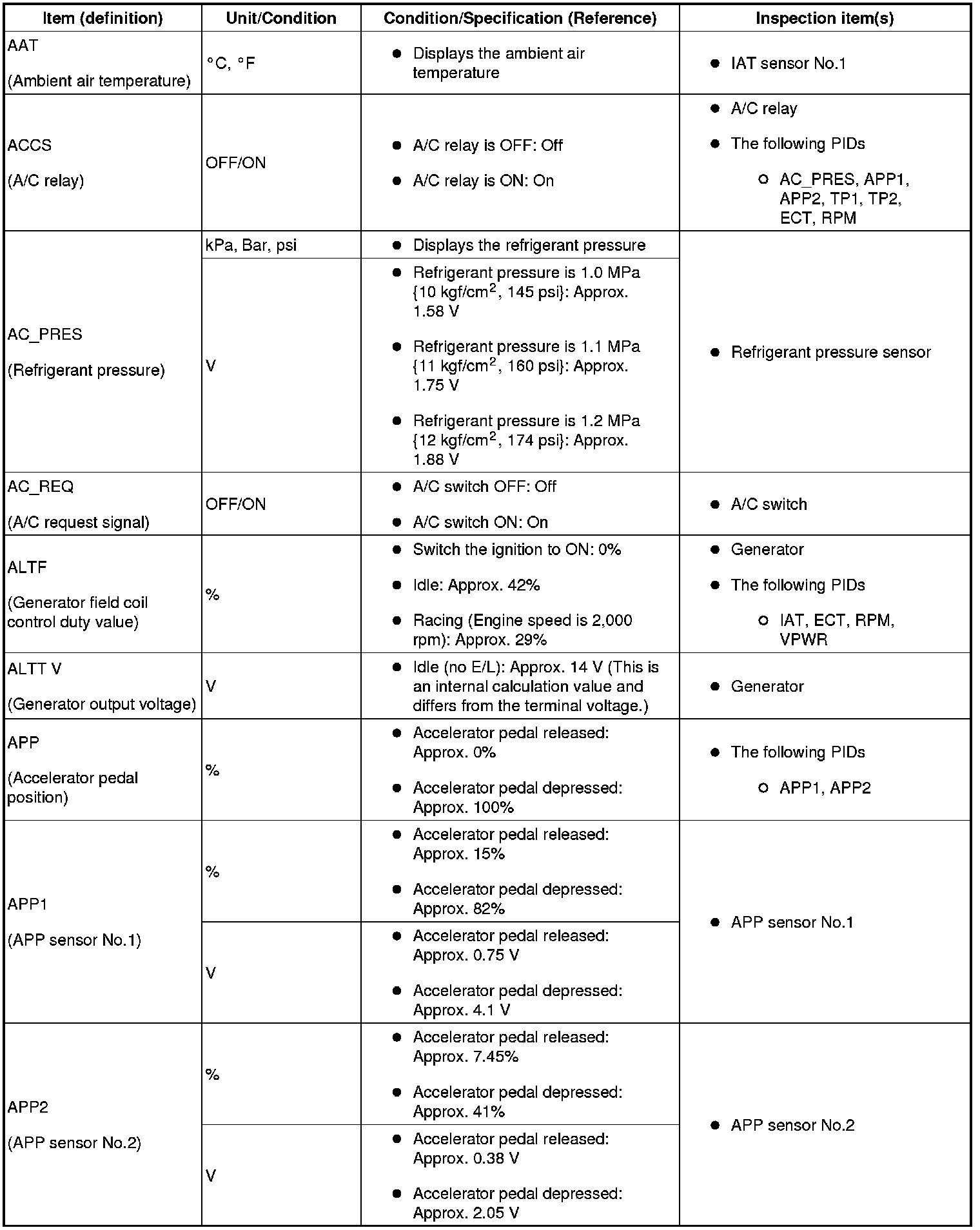 - The PID/DATA MONITOR function monitors the calculated value of the input/output signals in the PCM. Therefore, an output device malfunction is not directly indicated as a malfunction of the monitored value for the output device. If a monitored value of an output device is out of specification, inspect the monitored value of the input device related to the output control.
