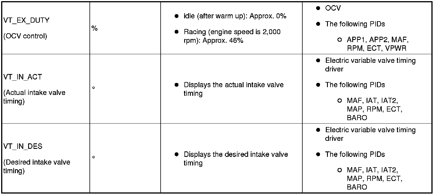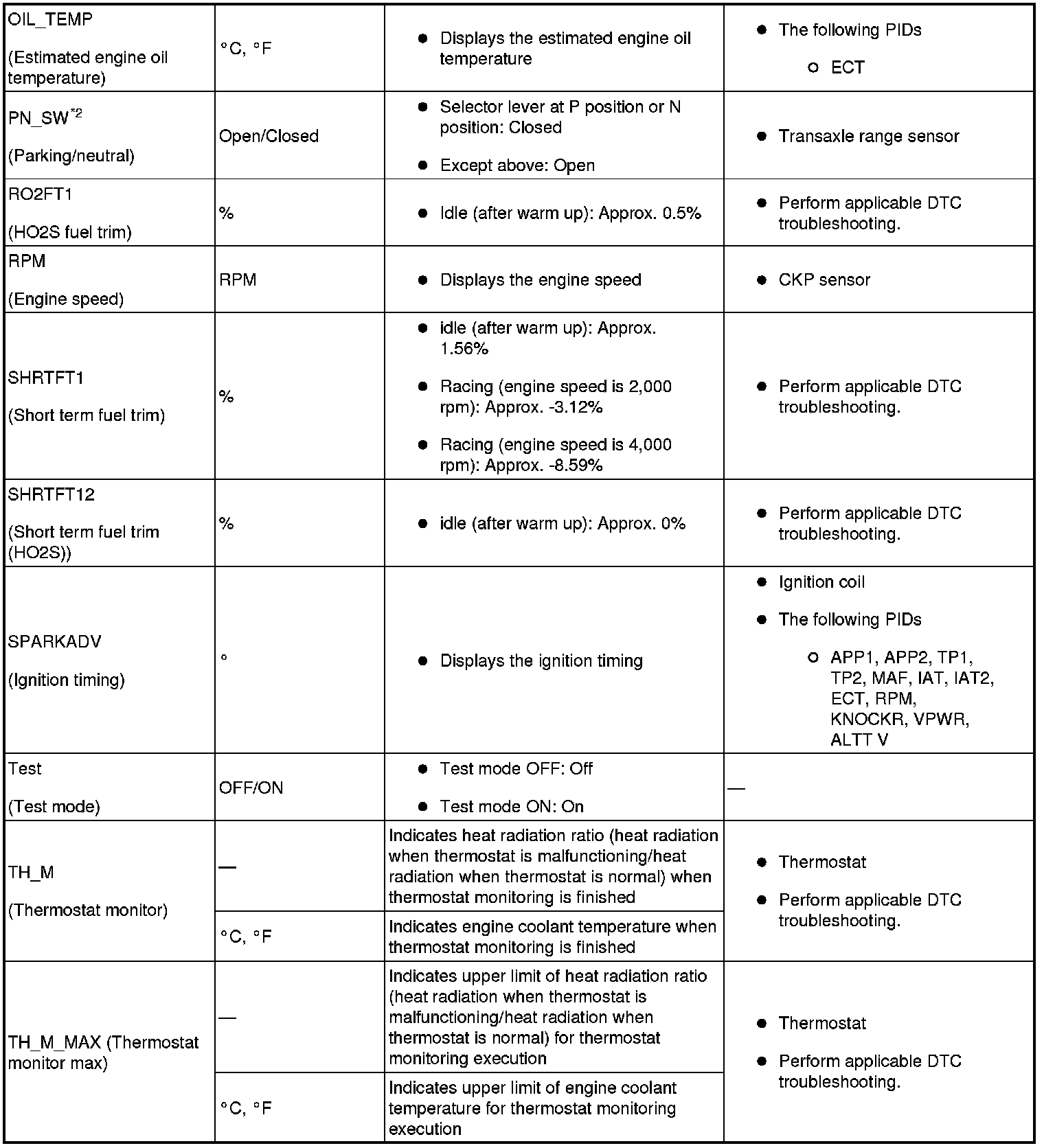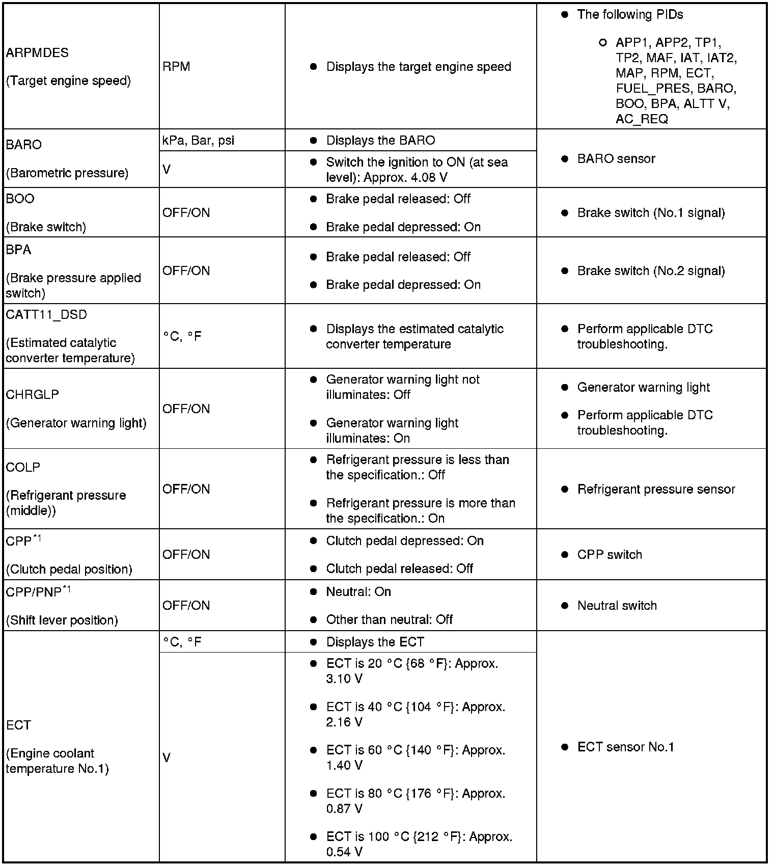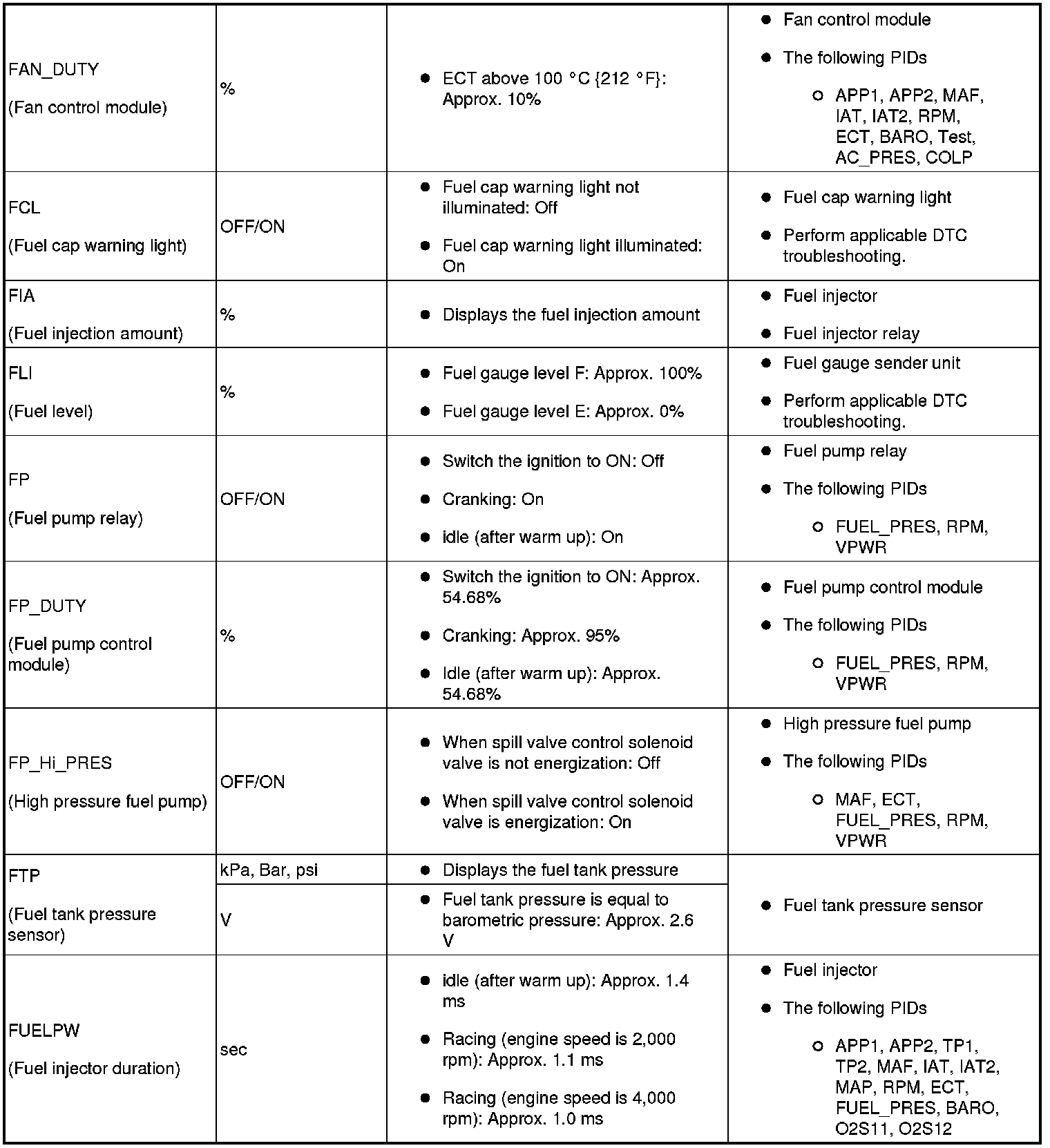- PIDs for the following parts are not available on this model. Go to the appropriate part inspection.