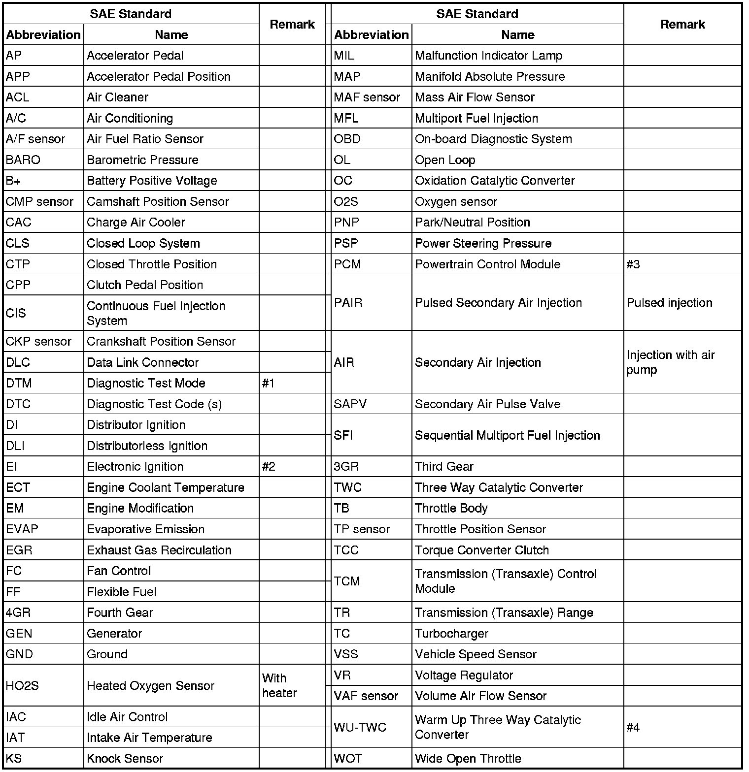 - In accordance with new regulations, SAE (Society of Automotive Engineers) standard names and abbreviations are now used in this information. The table below lists the names and abbreviations that have been used in Mazda manuals up to now and their SAE equivalents.