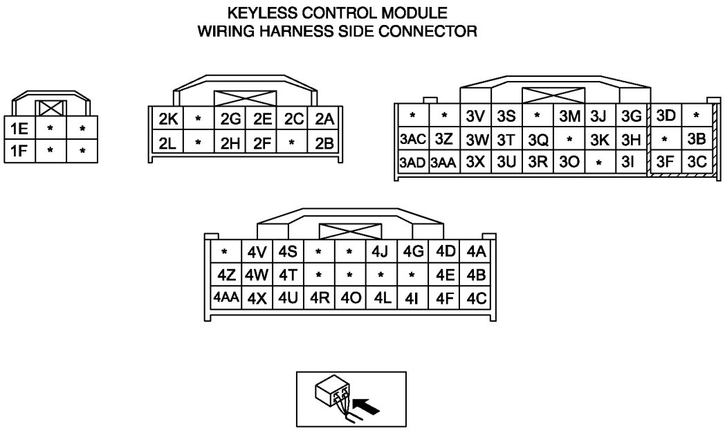 - If the system does not work normally even though the inspection items or related wiring harnesses do not have any malfunction, replace the keyless control module.