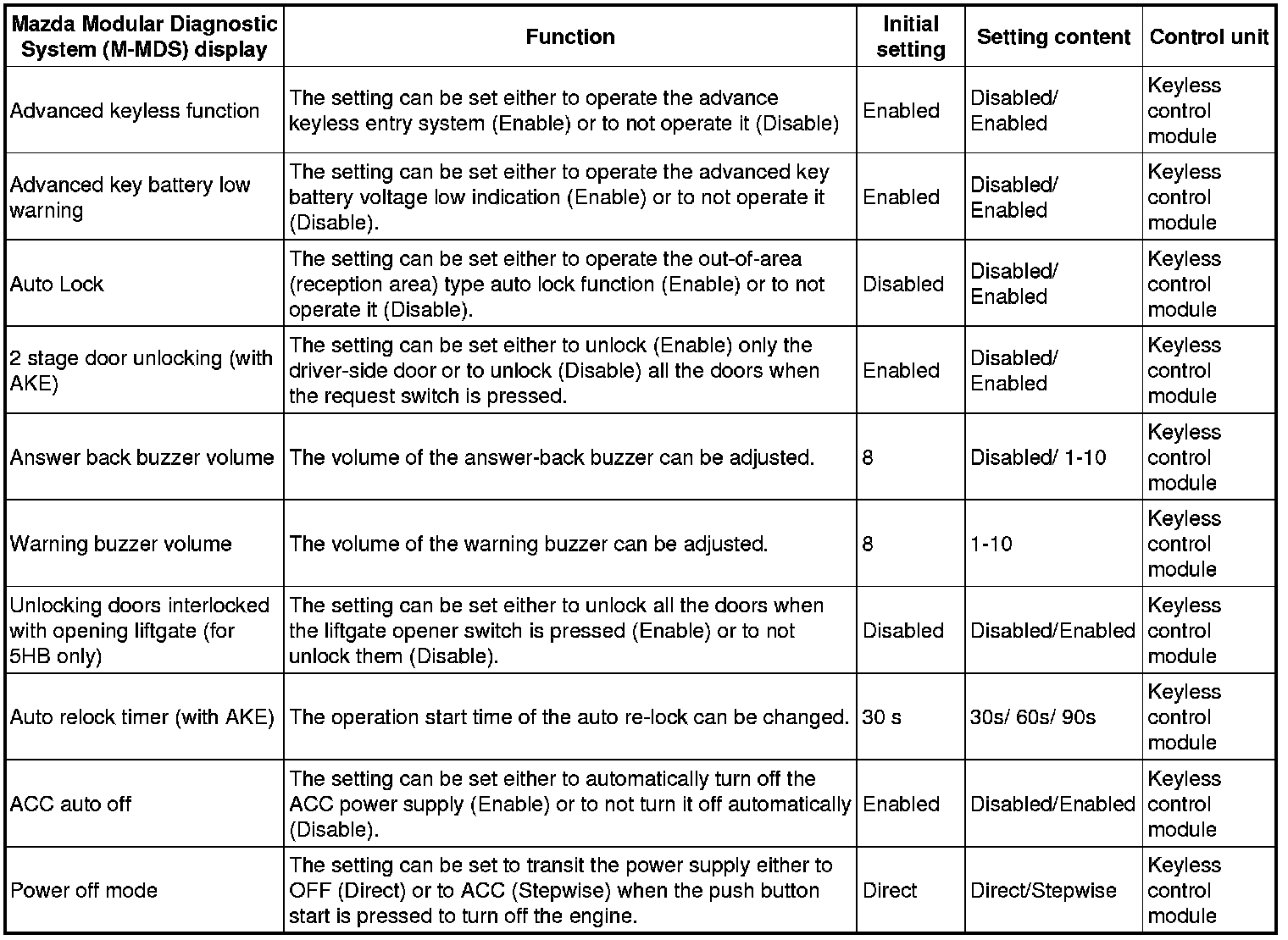 Home >> Mazda >> 2012 >> 3 L4-2.5L >> Repair and Diagnosis >> Body and Frame >> Locks >> Keyless Entry >> Testing and Inspection >> Programming and Relearning >> Personalization Features Setting Procedure