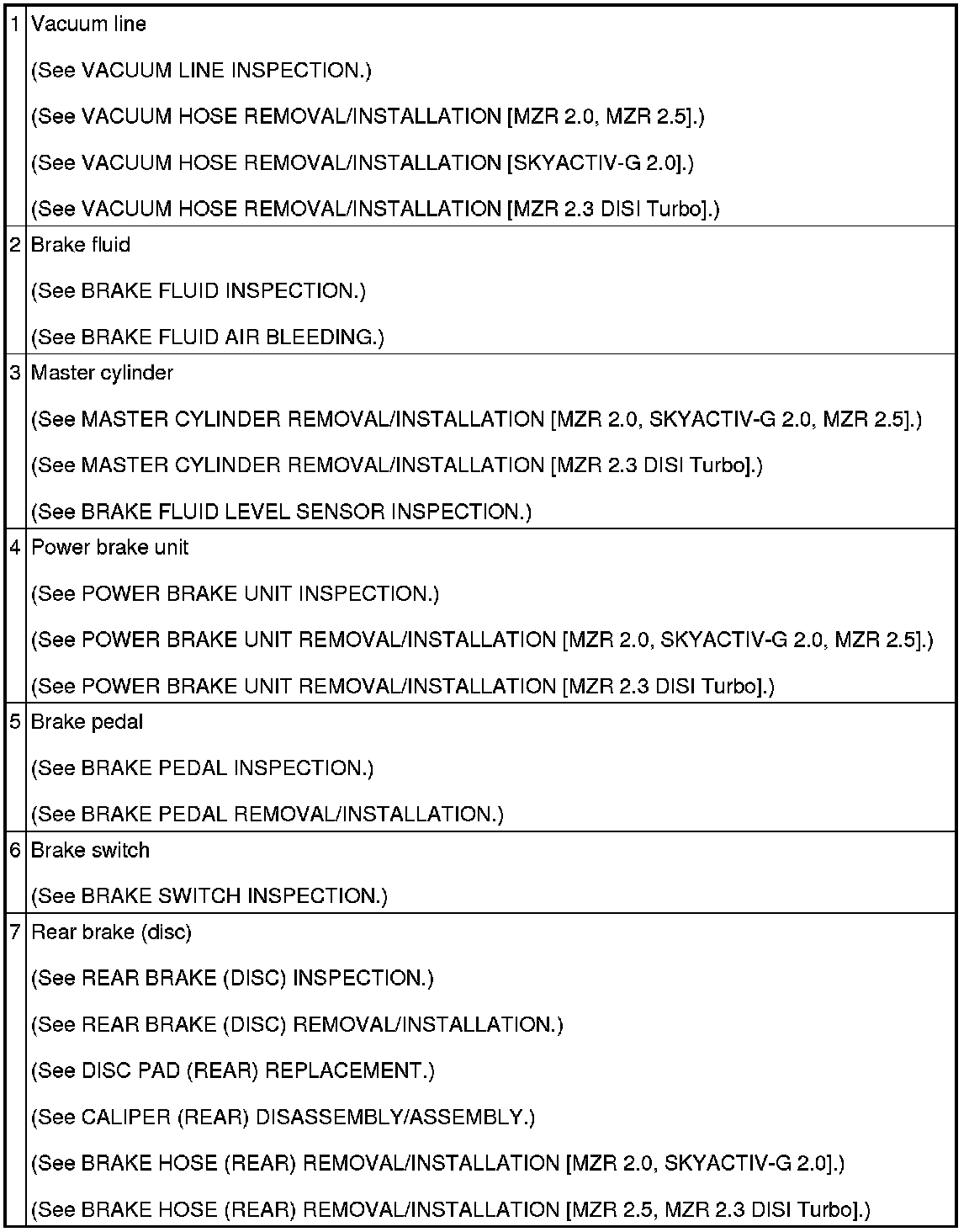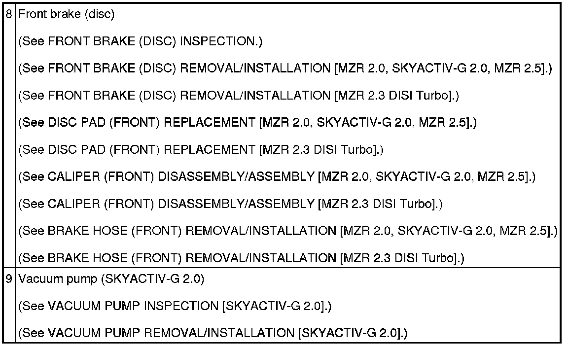 CONVENTIONAL BRAKE SYSTEM LOCATION INDEX