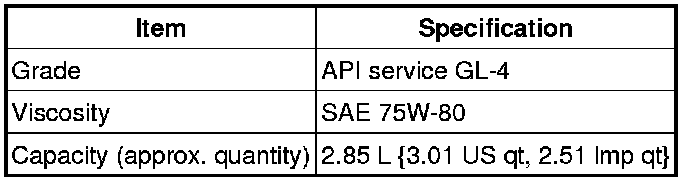 7. Add the specified amount and type of oil through the oil level plug hole until the level reaches the bottom of the oil level plug hole. Manual transaxle oil