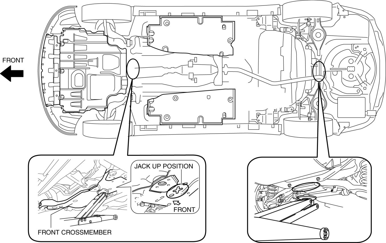 JACKING POSITIONS, VEHICLE LIFT (2 SUPPORTS) AND SAFETY STAND (RIGID RACK) POSITIONS