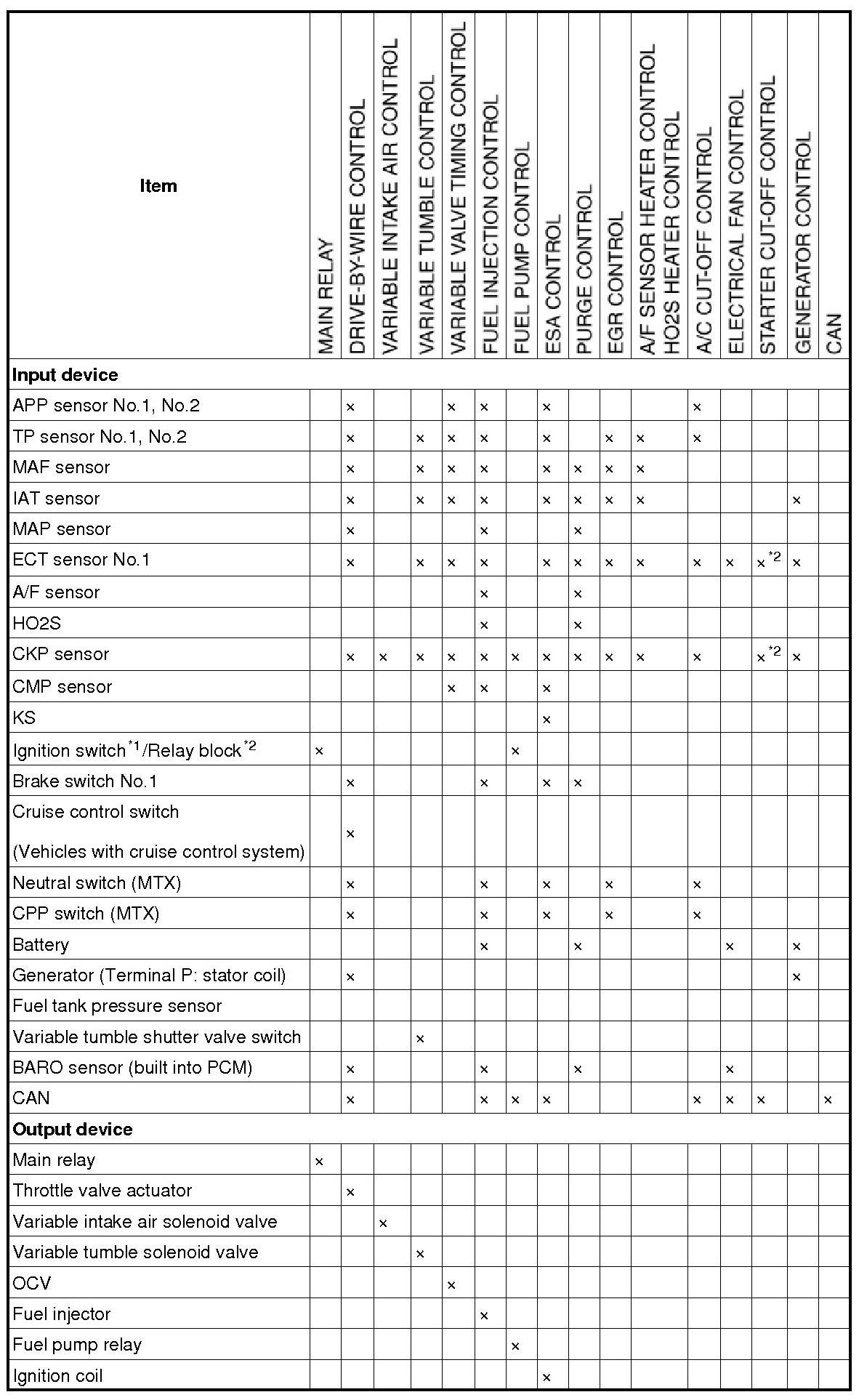 CONTROL SYSTEM DEVICE AND CONTROL RELATIONSHIP CHART [MZR 2.0, MZR 2.5]
