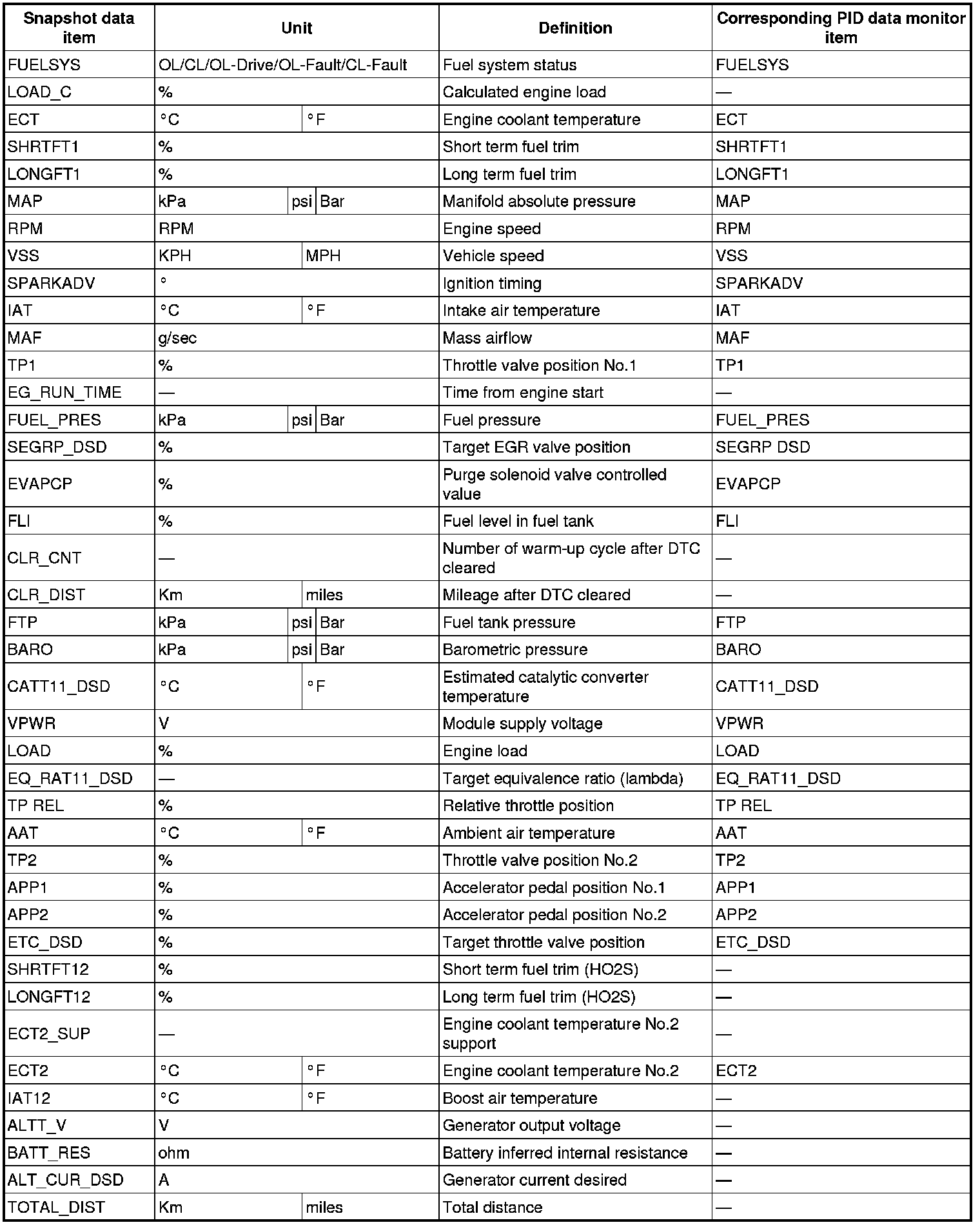 - Snapshot data items are not displayed, according to detected DTC.