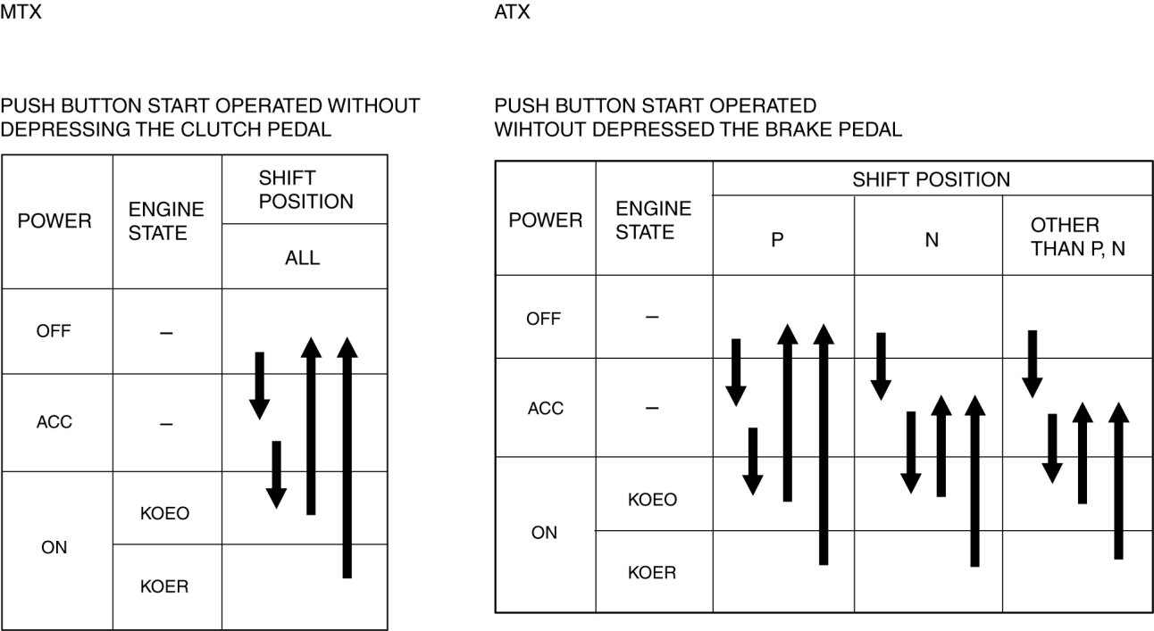 - The engine can be started as follows by operating the push button start with the engine start conditions met. (Engine is running)