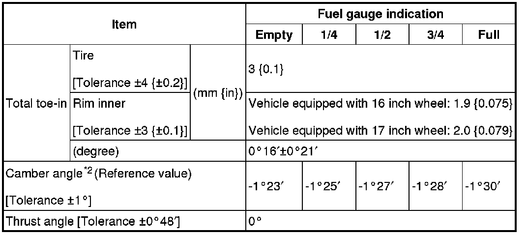Rear wheel alignment (Unloaded)*1 [MZR 2.0, SKYACTIV-G 2.0, MZR 2.5]