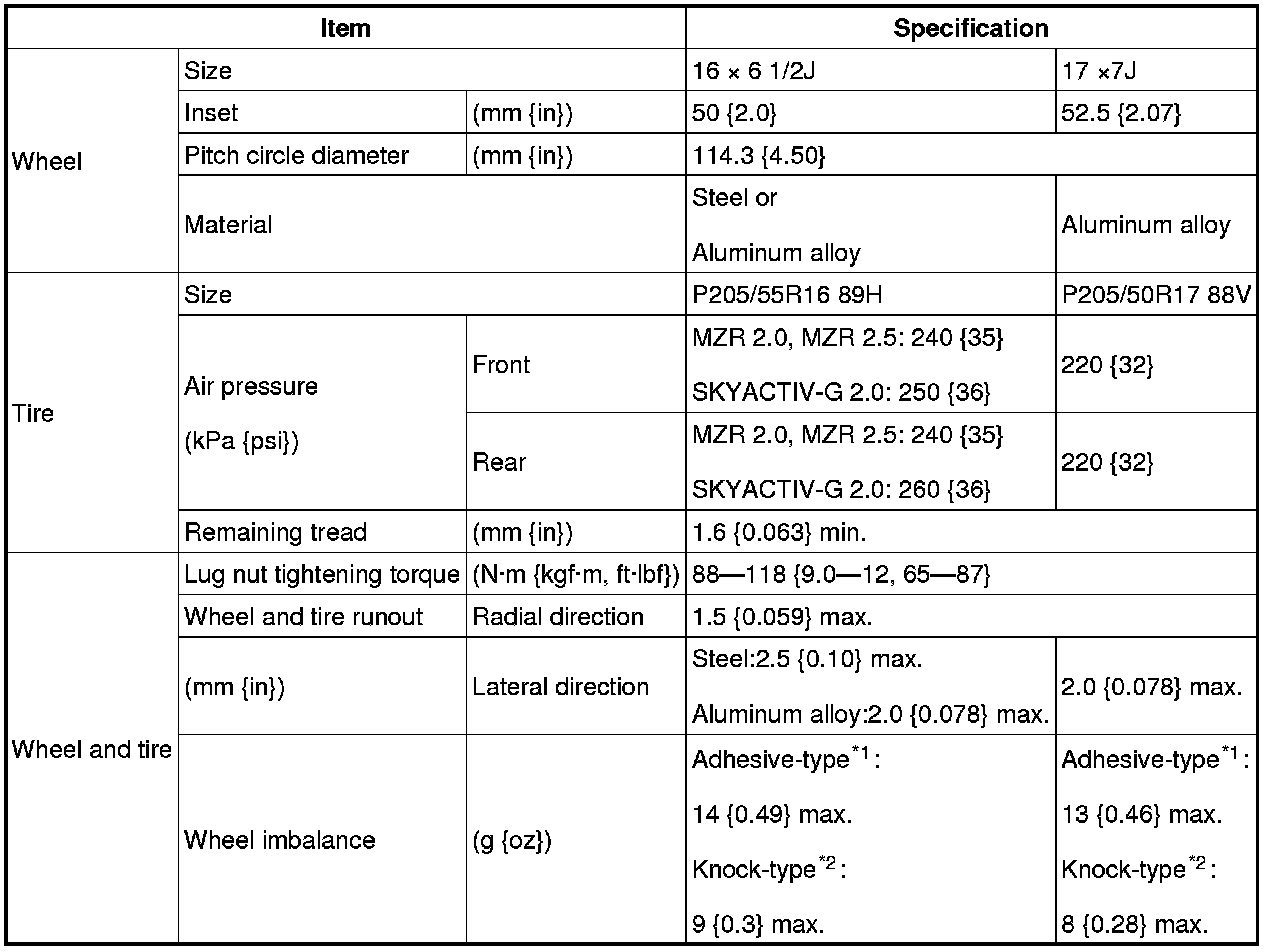 Standard tire and wheel [MZR 2.0, SKYACTIV-G 2.0, MZR 2.5]