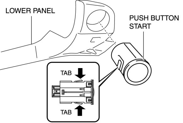 6. Release the tabs and remove the push button start from the lower panel.