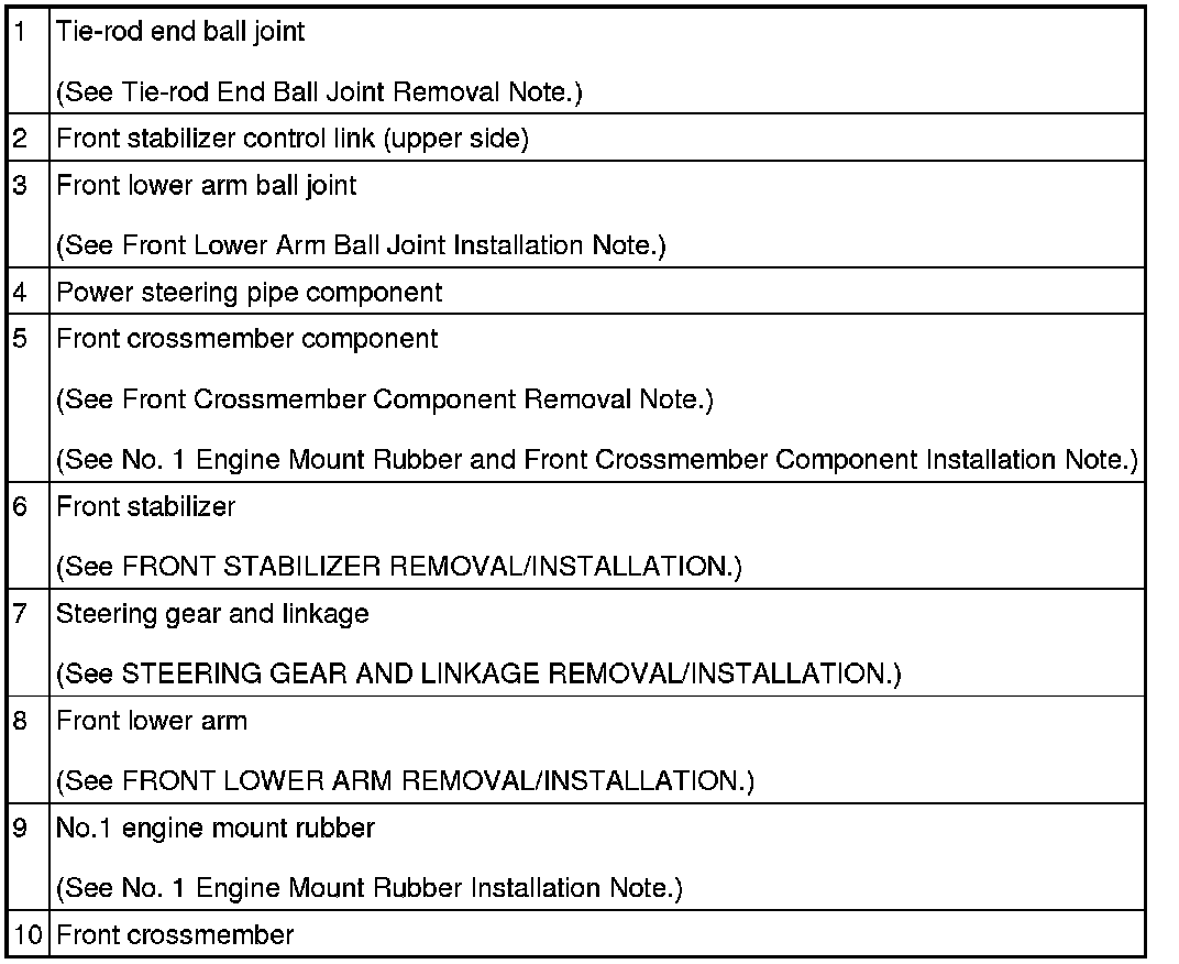 Front Crossmember Component Removal Note
