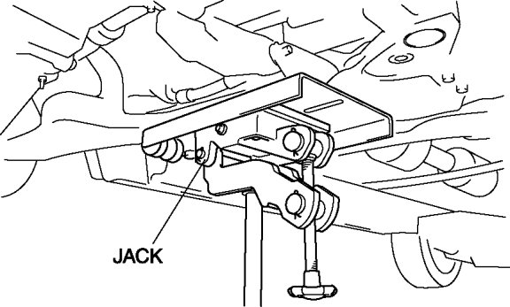 - The crossmember component could fall and cause serious injury or death. Verify that the jack securely supports the crossmember component.
