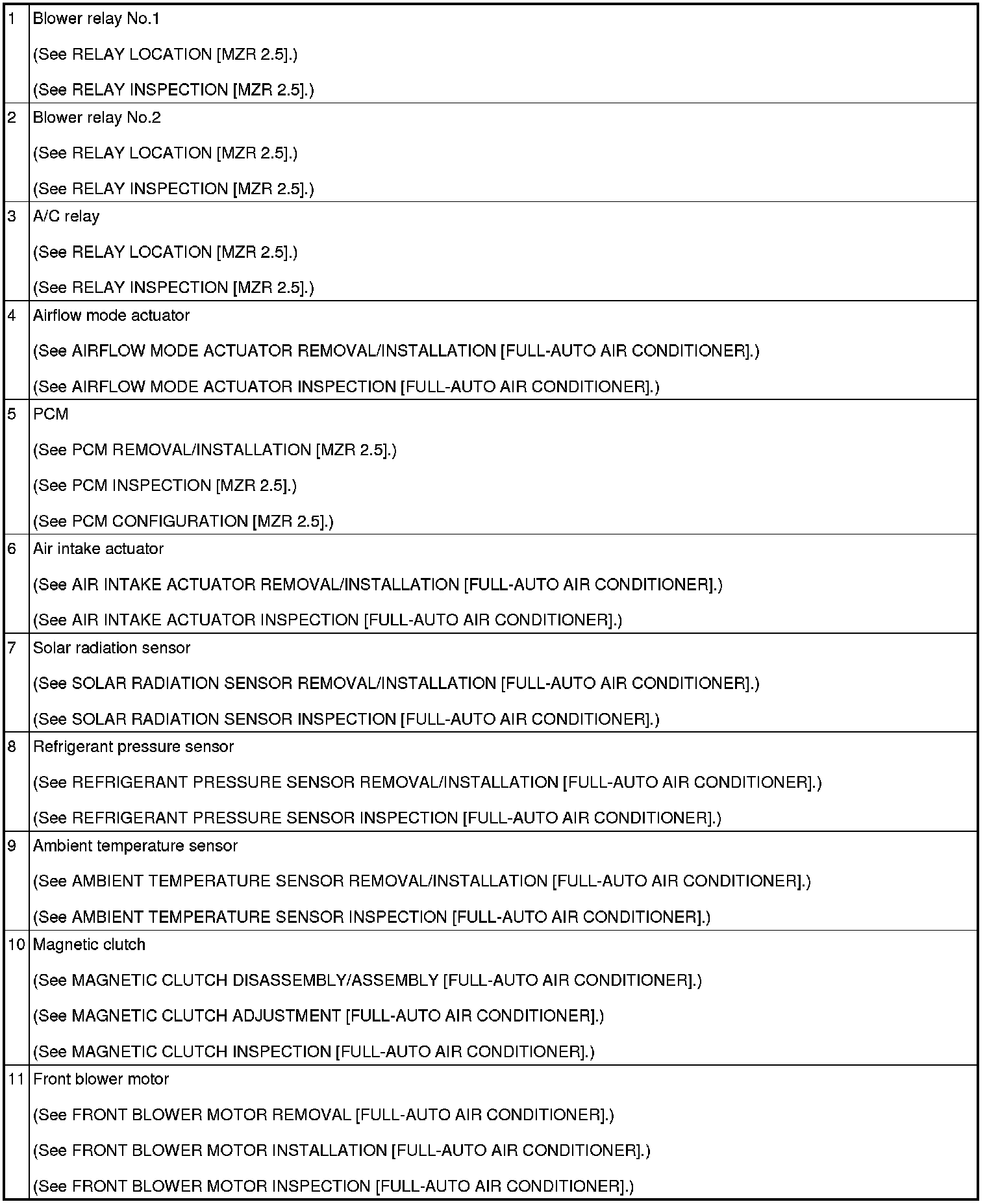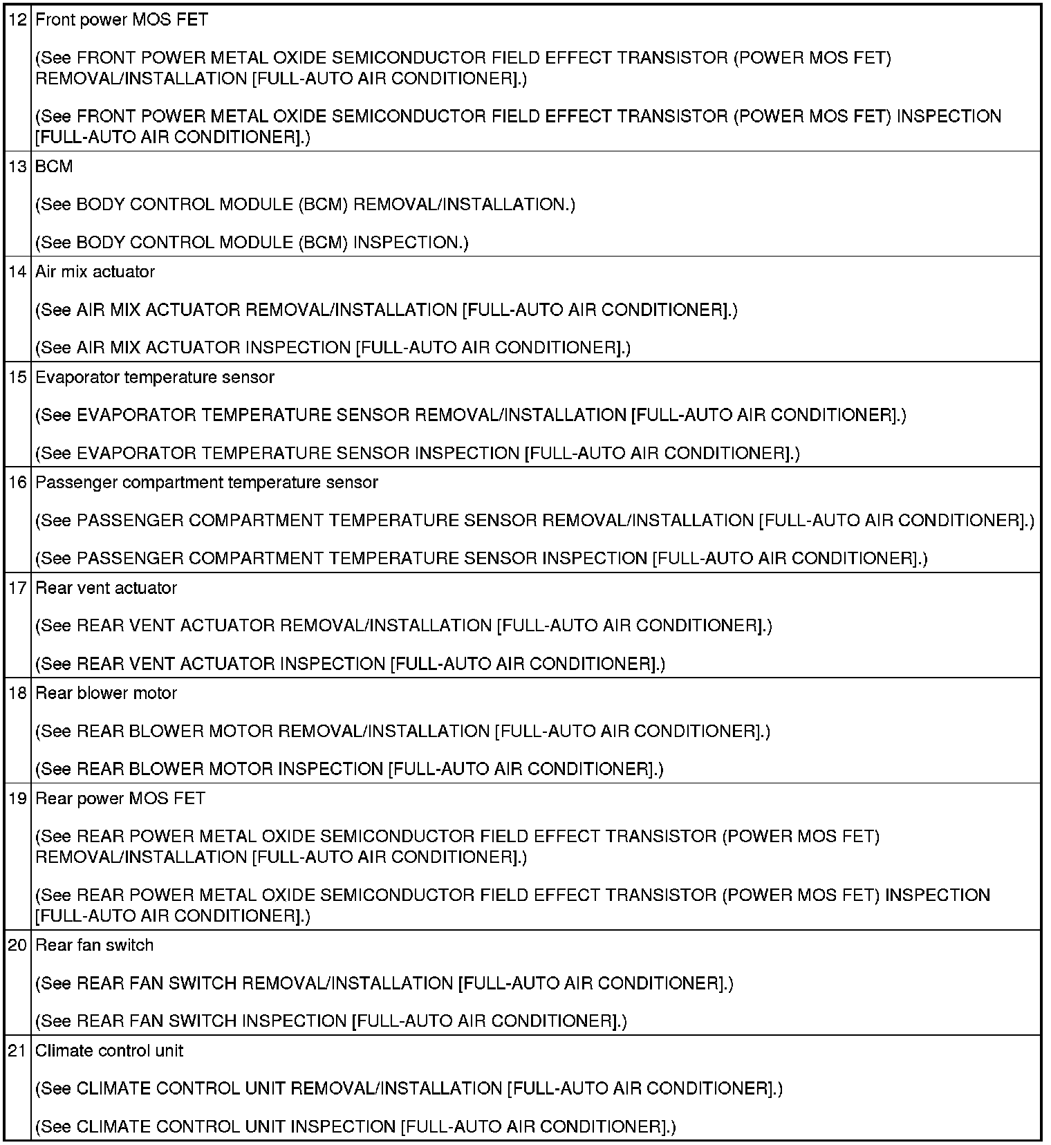 HVAC CONTROL SYSTEM LOCATION INDEX [FULL-AUTO AIR CONDITIONER]