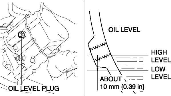 6. Add the specified manual transaxle oil through the oil level plug hole.
